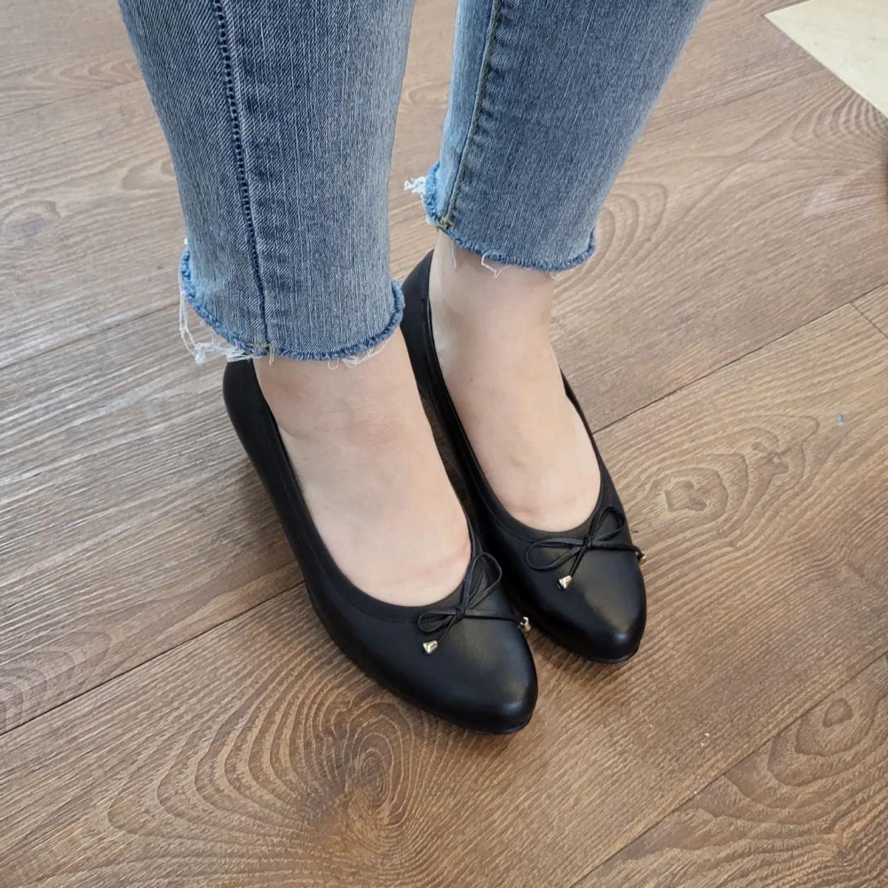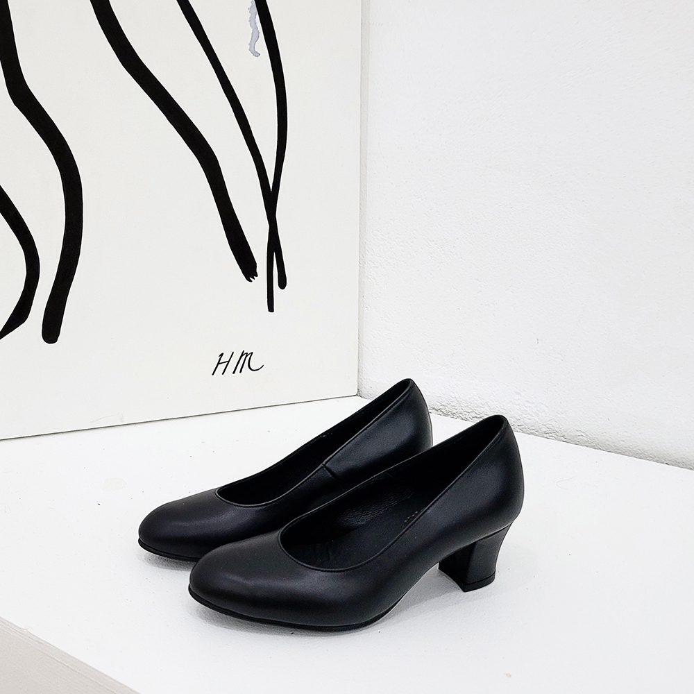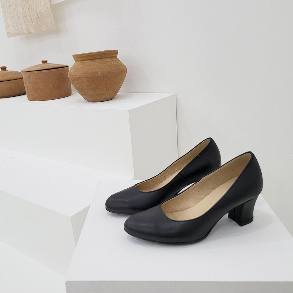 작구요 소가죽 검정내피 펌프스 힐 5cm