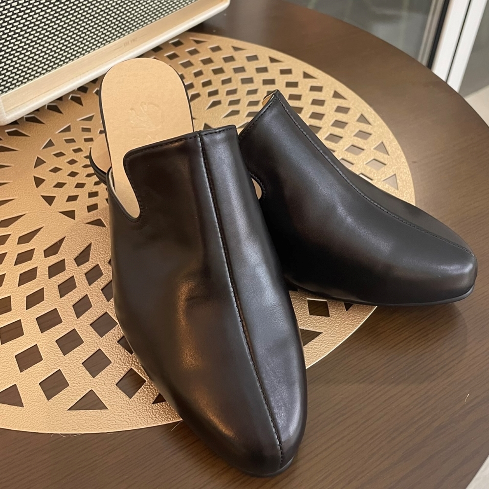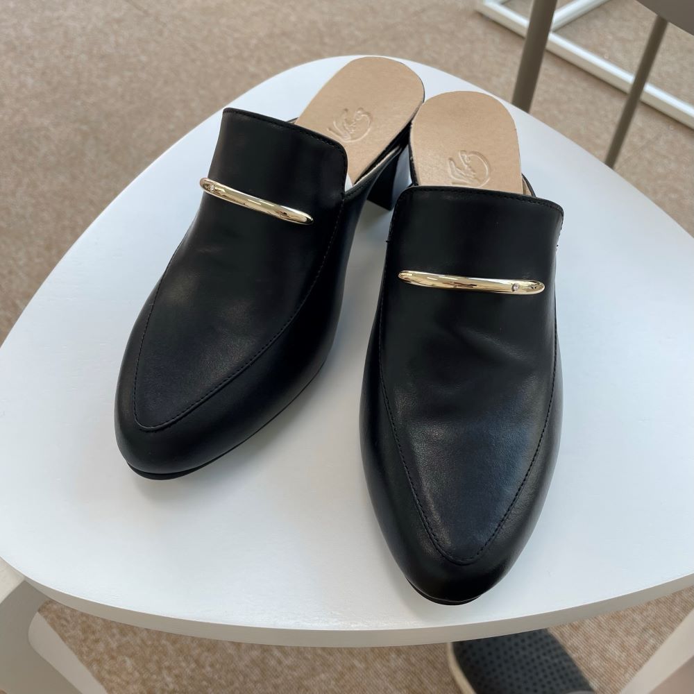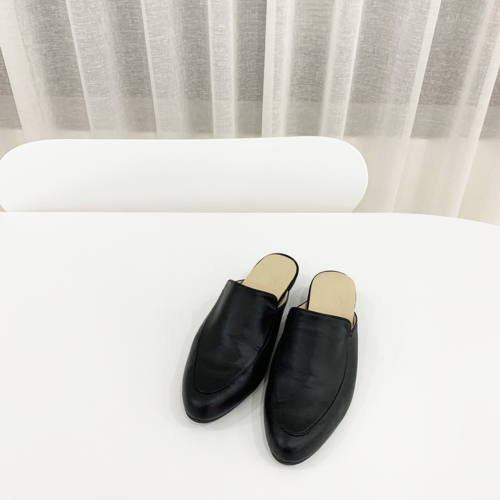 작구요 소가죽 검정 라인 심플 블로퍼 3cm