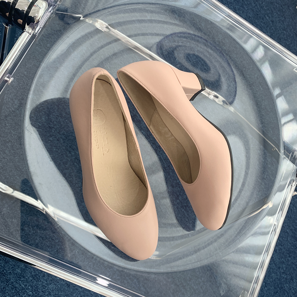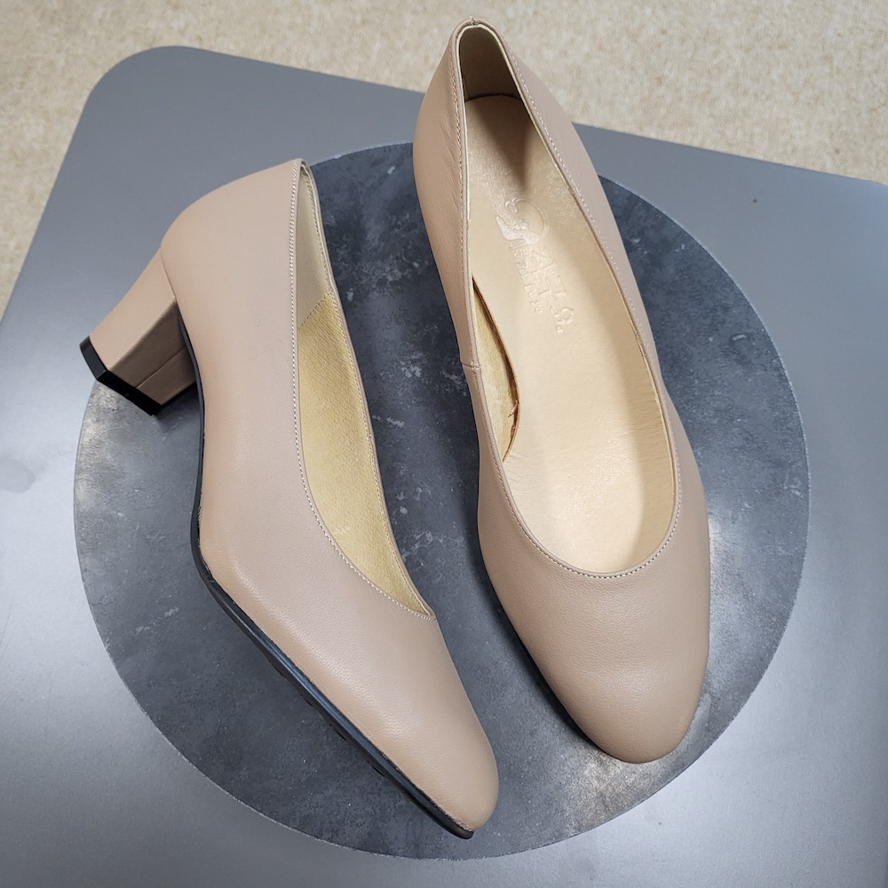 작구요 양가죽 모카베이지 펌프스 힐 5cm