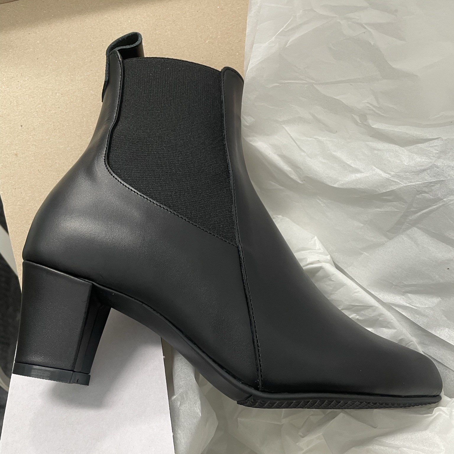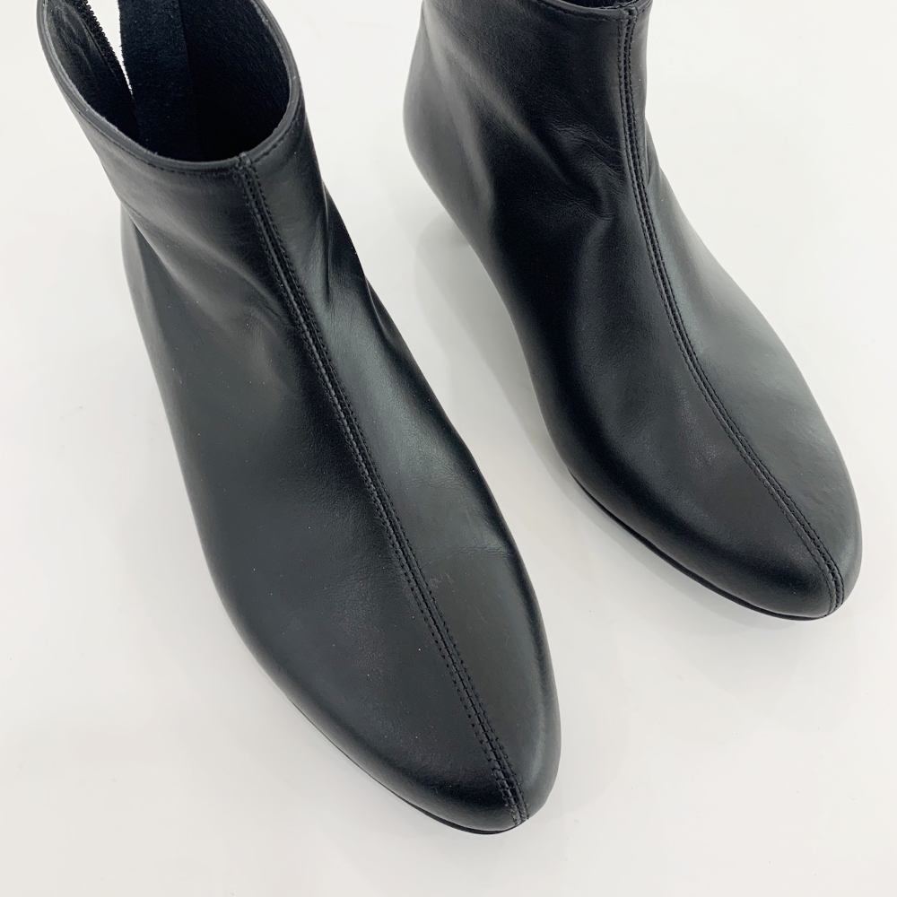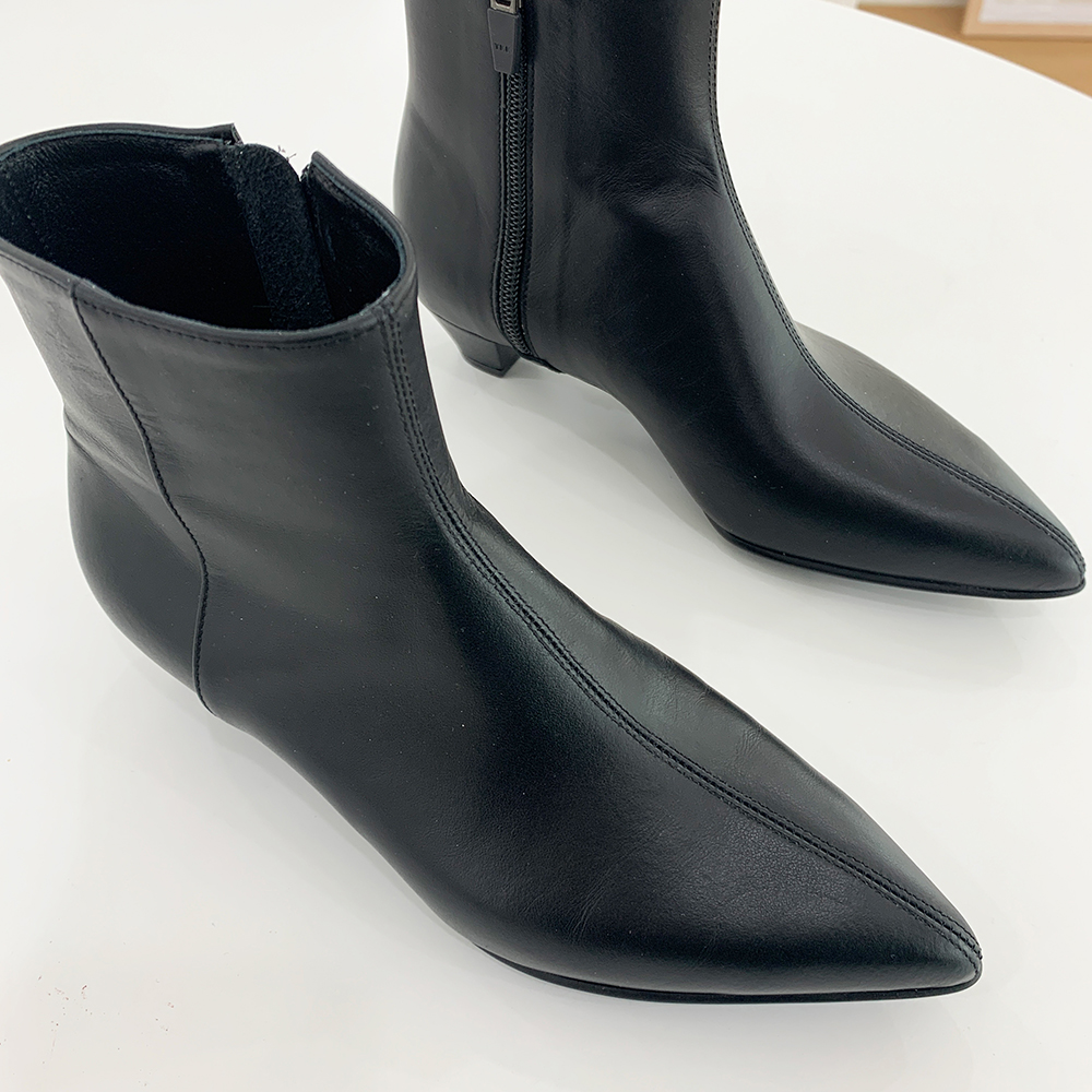 작구요 검정 소가죽 뾰족코 하이 앵클부츠 3cm