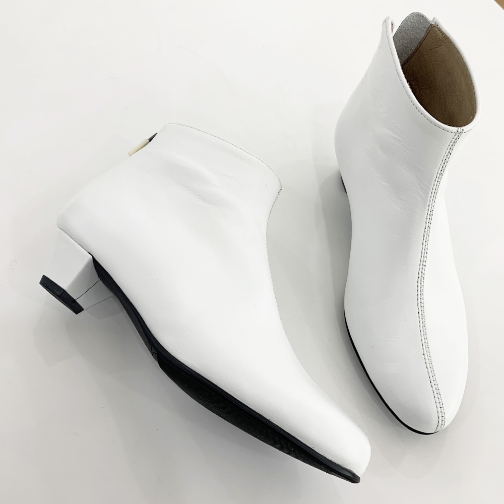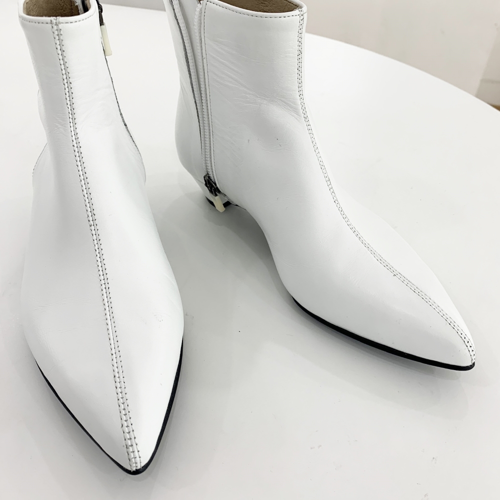 작구요 흰색 소가죽 뾰족코 하이 앵클부츠 3cm
