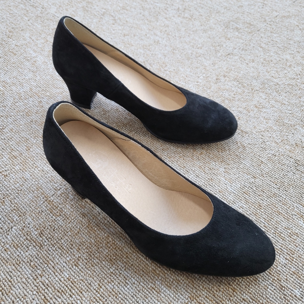 작구요 스웨이드 검정 펌프스 힐 5cm