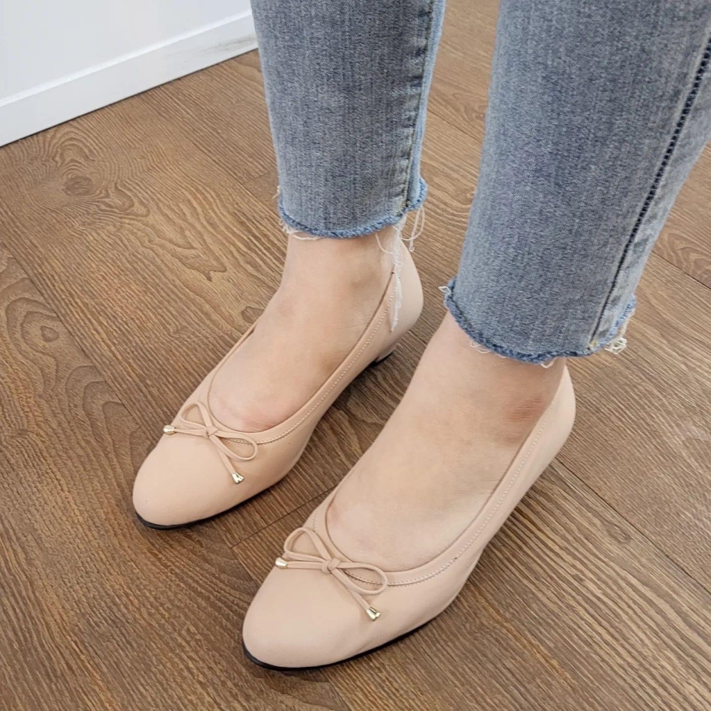 작구요 모카베이지 양가죽 리본 플랫슈즈 3cm