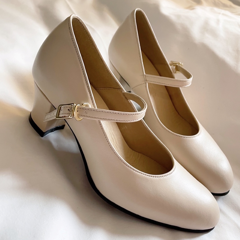 작구요 양가죽 진아이보리 메리제인 힐 5cm