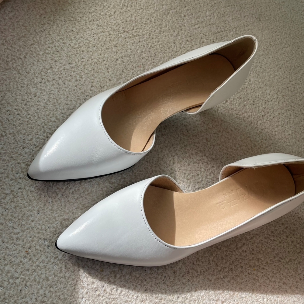 작구요 흰색 인사이드오픈 뾰족코 펌프스 5cm