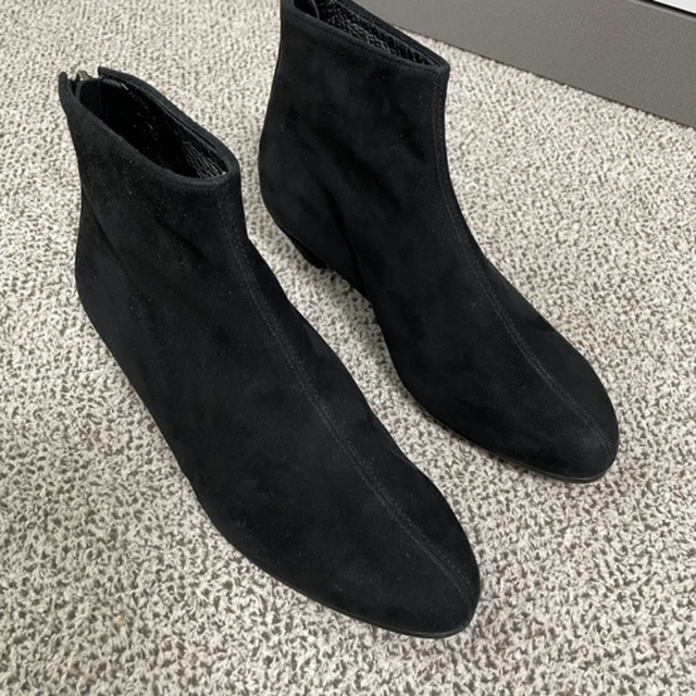 작구요 검정 소가죽 라운드코 로우 앵클부츠 3cm