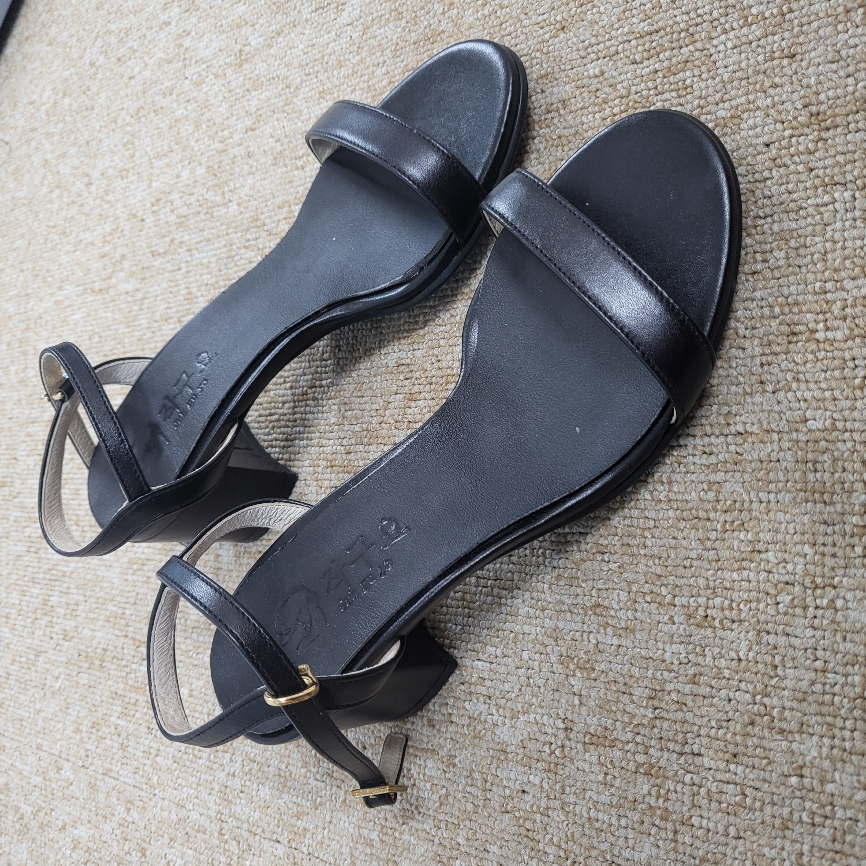 작구요 소가죽 검정 심플샌들 힐 5cm
