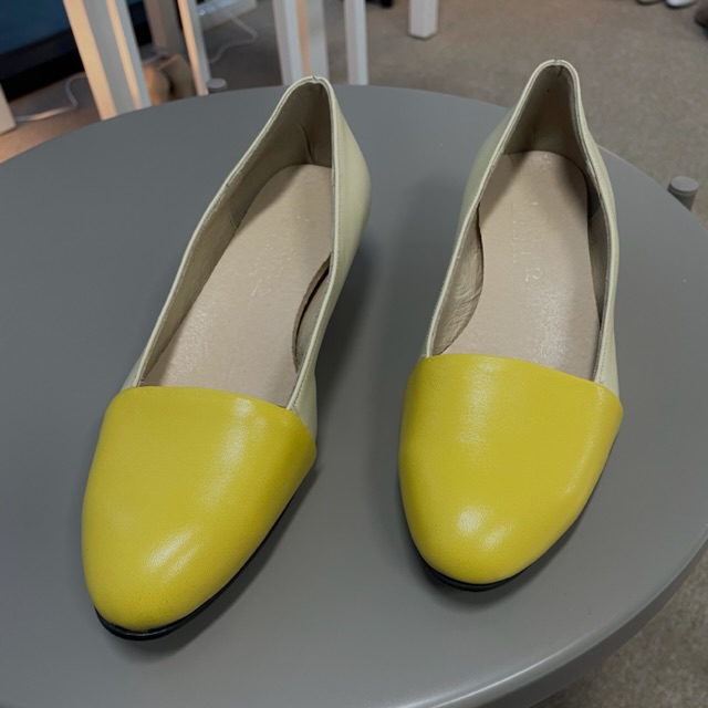 작구요 양가죽 배색 노랑/베이지 구두 3cm