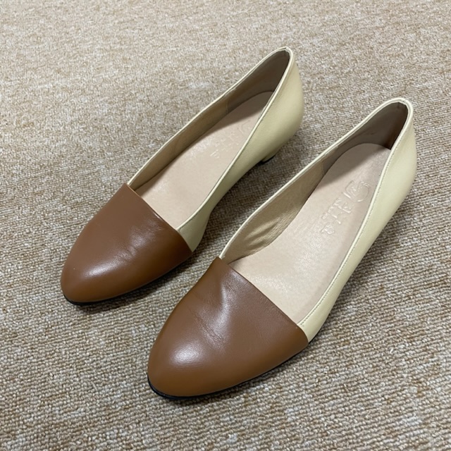 작구요 양가죽 배색 구두 베이지/브라운 3cm