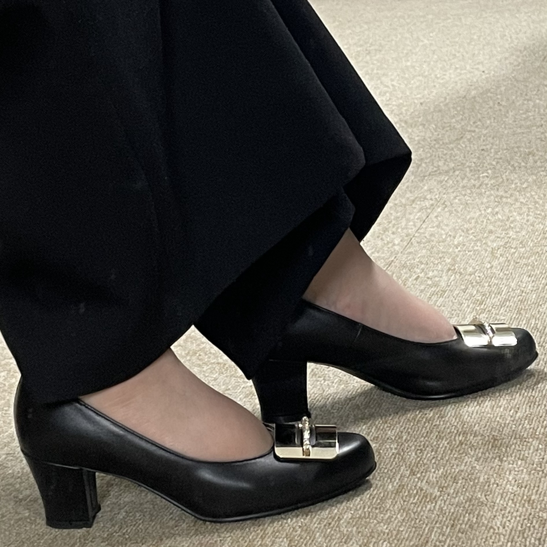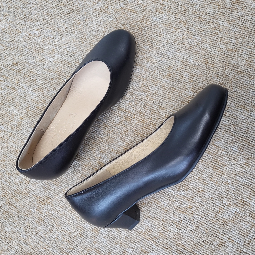 작구요 소가죽 검정 인스퀘어 펌프스 힐 3cm
