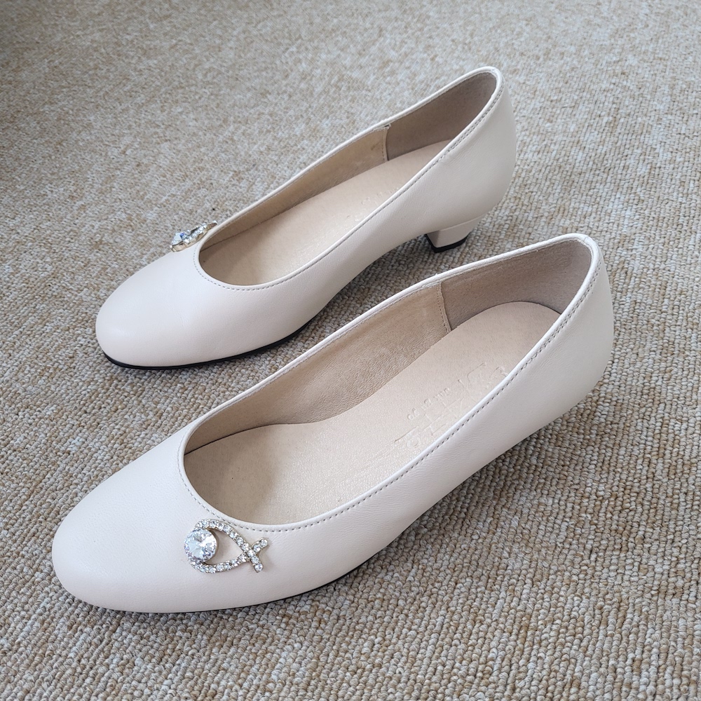 작구요 양가죽 진아이보리 다이아 펌프스 힐 3cm