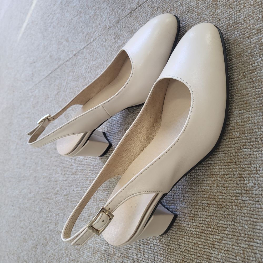 작구요 양가죽 옐로베이지 오픈토 브이라인 슬링백 5cm