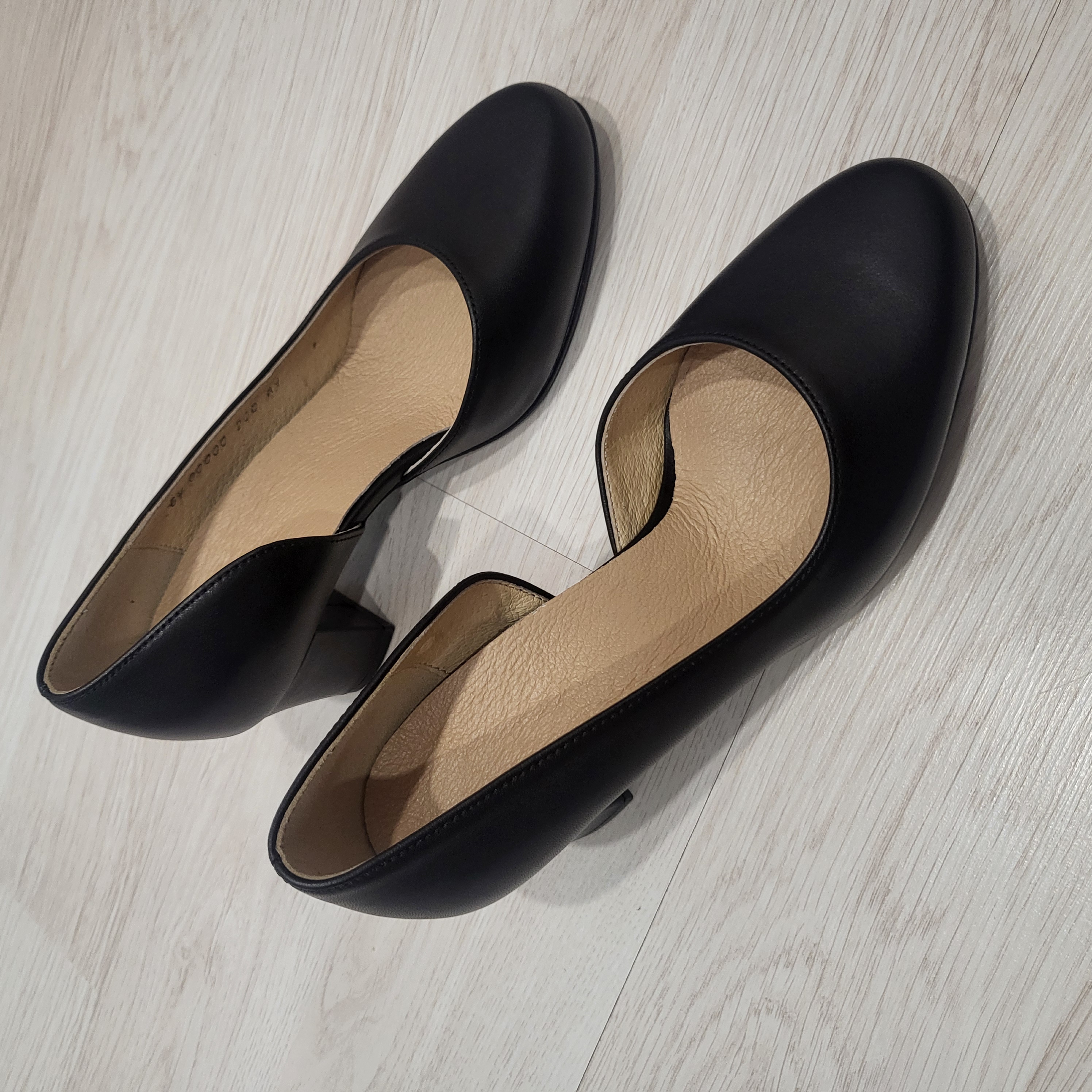 작구요 검정 소가죽 인사이드오픈 펌프스 5cm