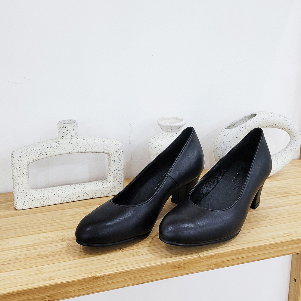 작구요 소가죽 검정내피 펌프스 힐 5cm