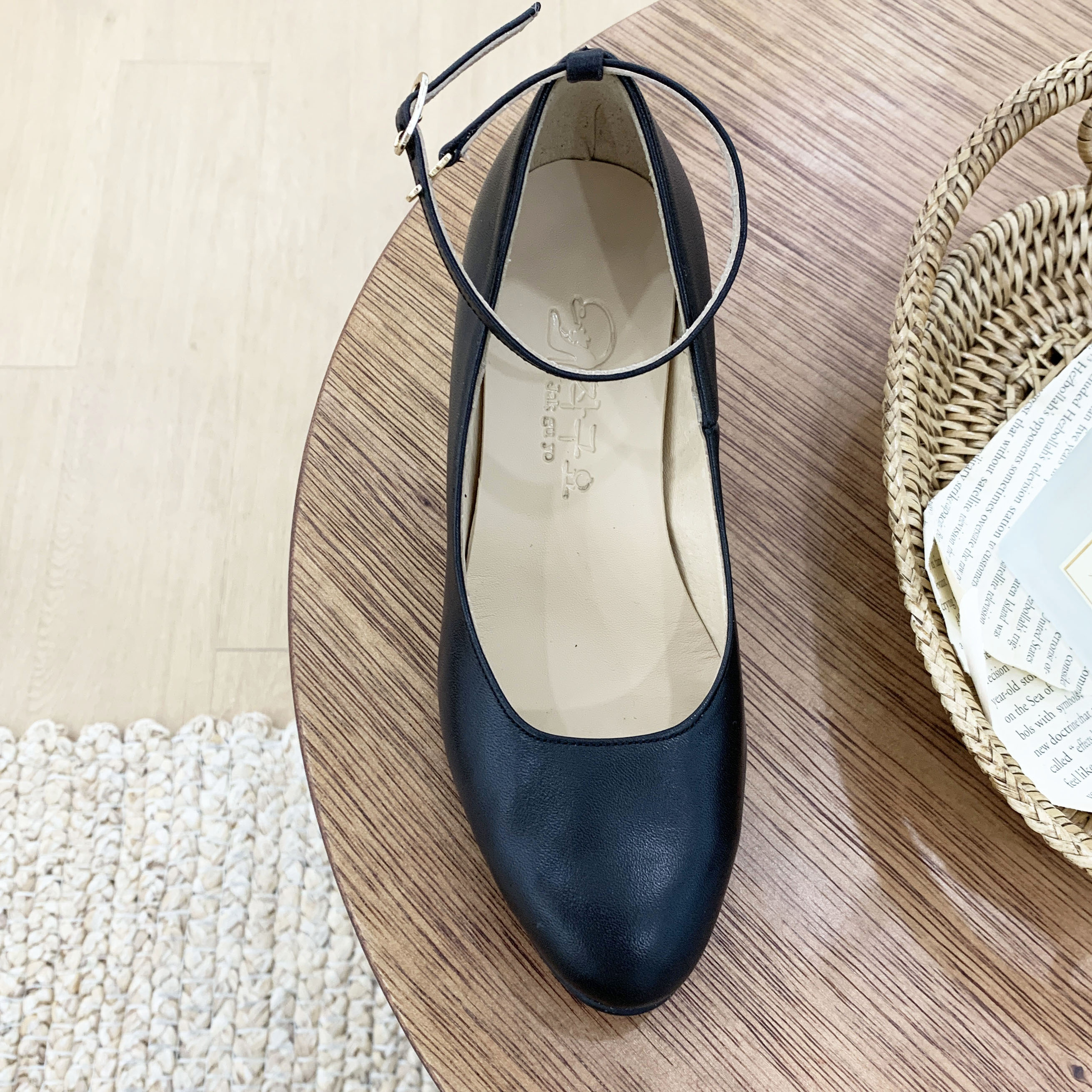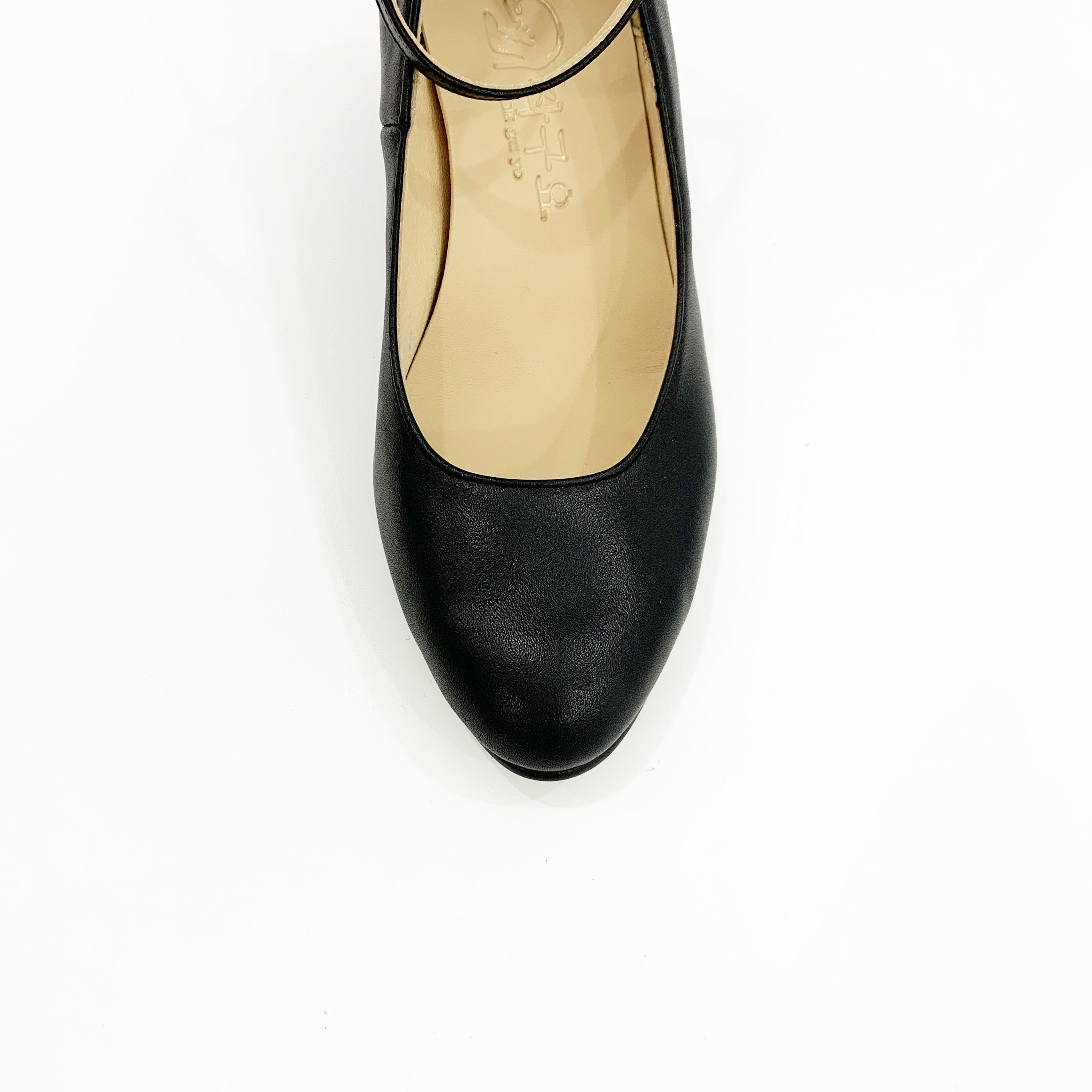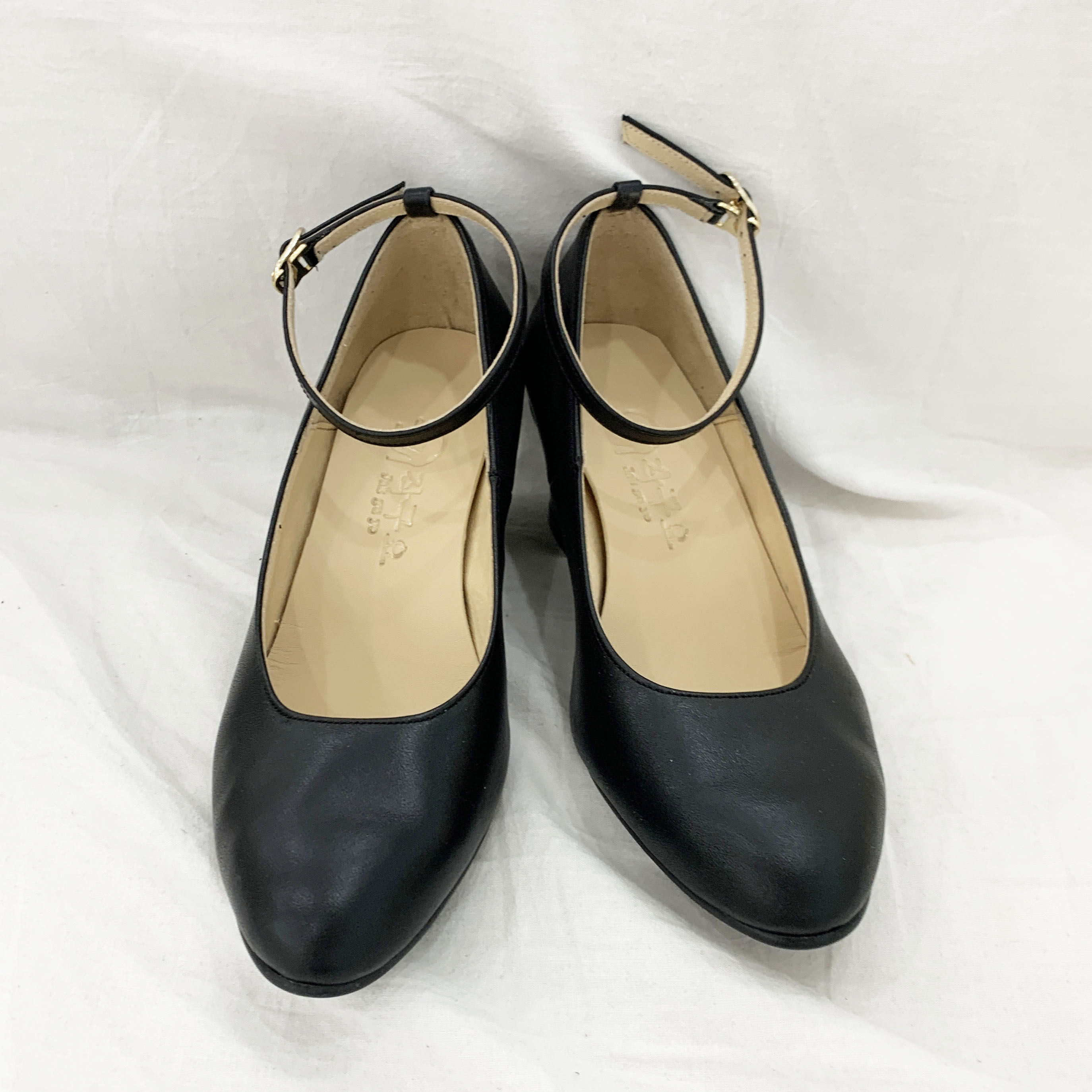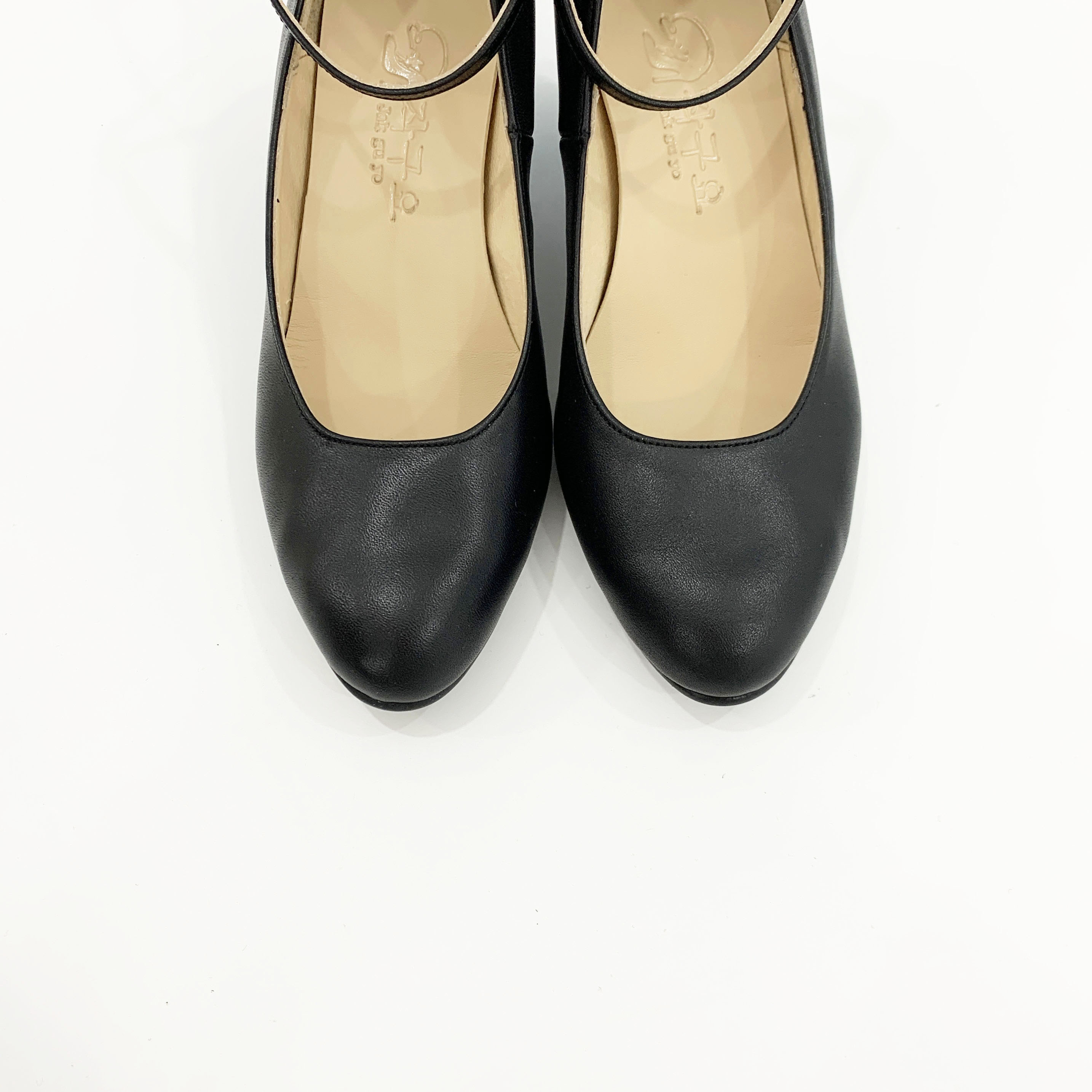 작구요 소가죽 검정 스트랩 인스퀘어 펌프스 힐 5cm
