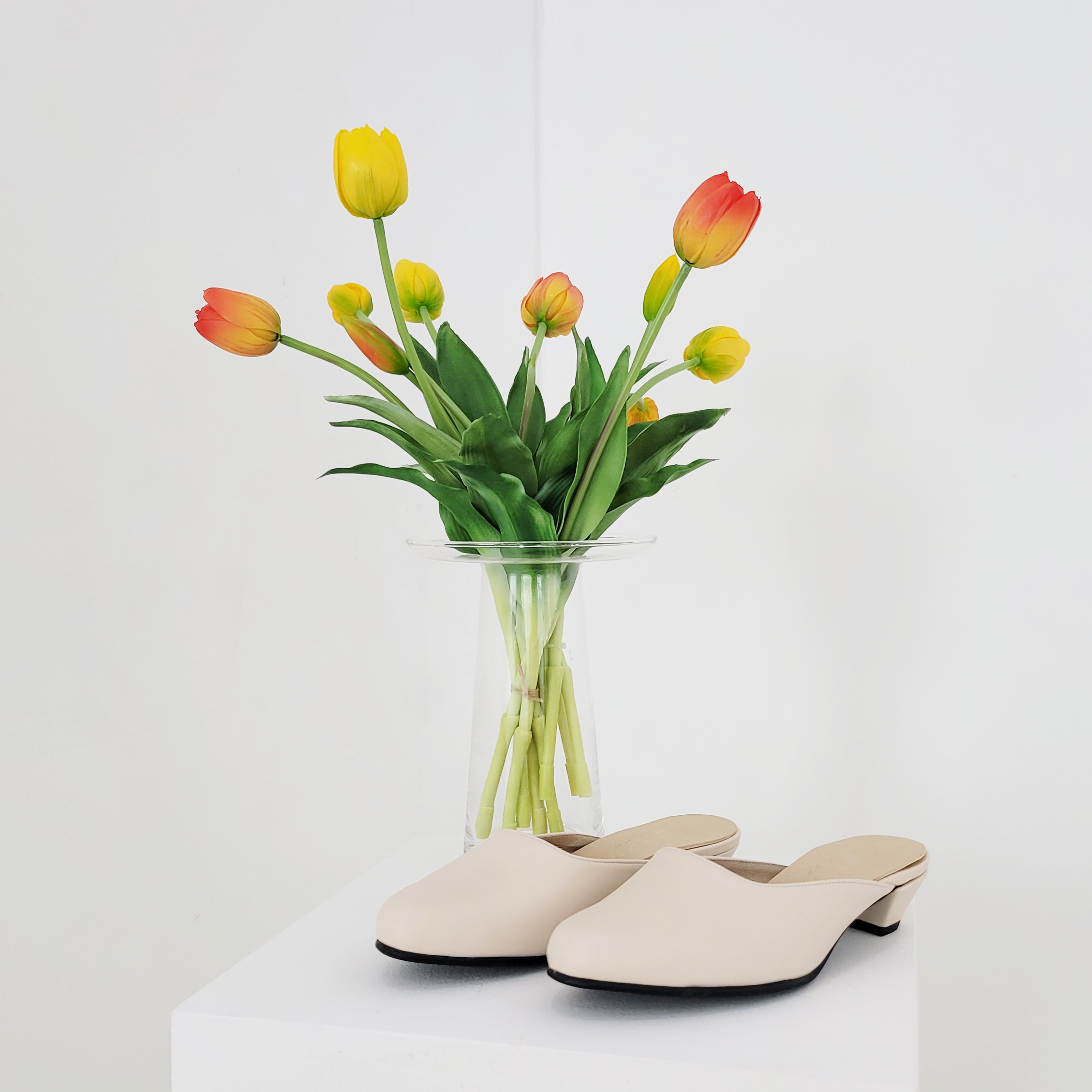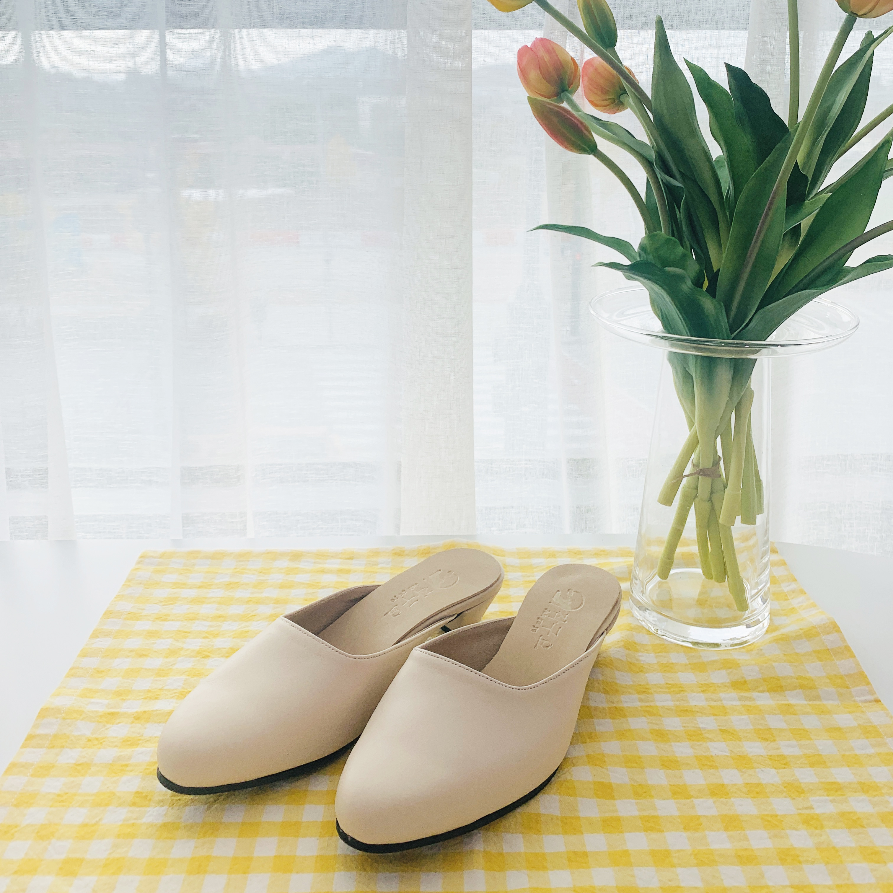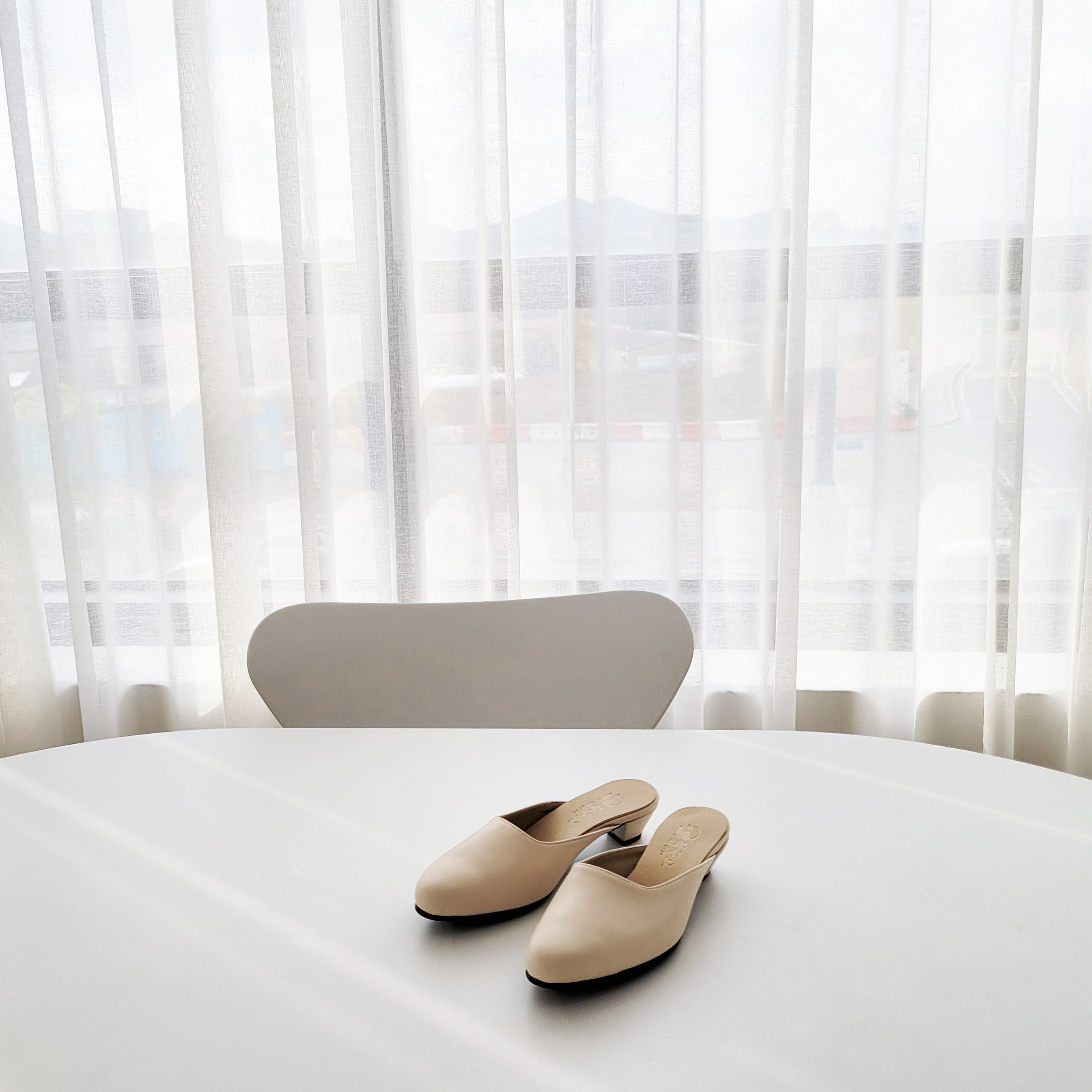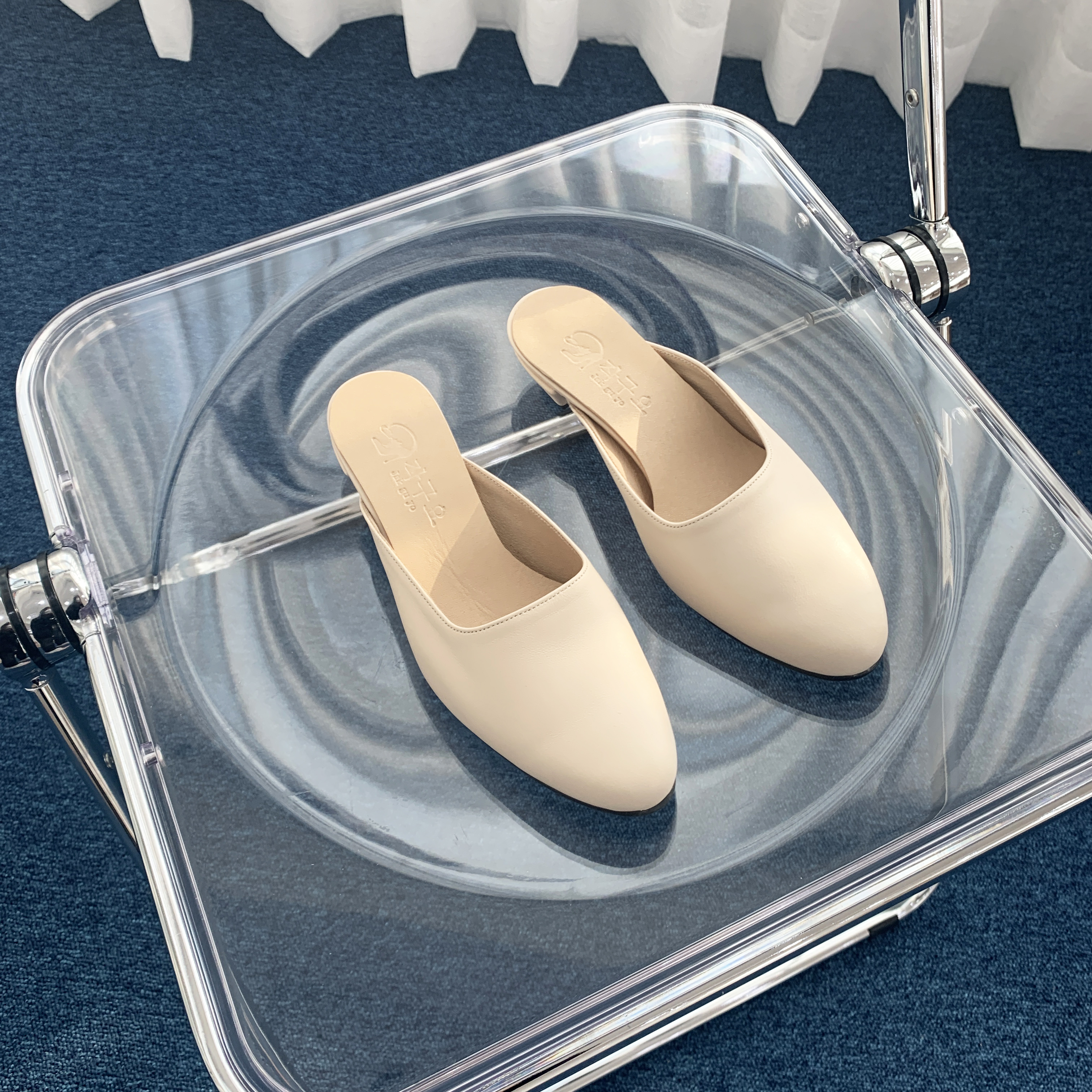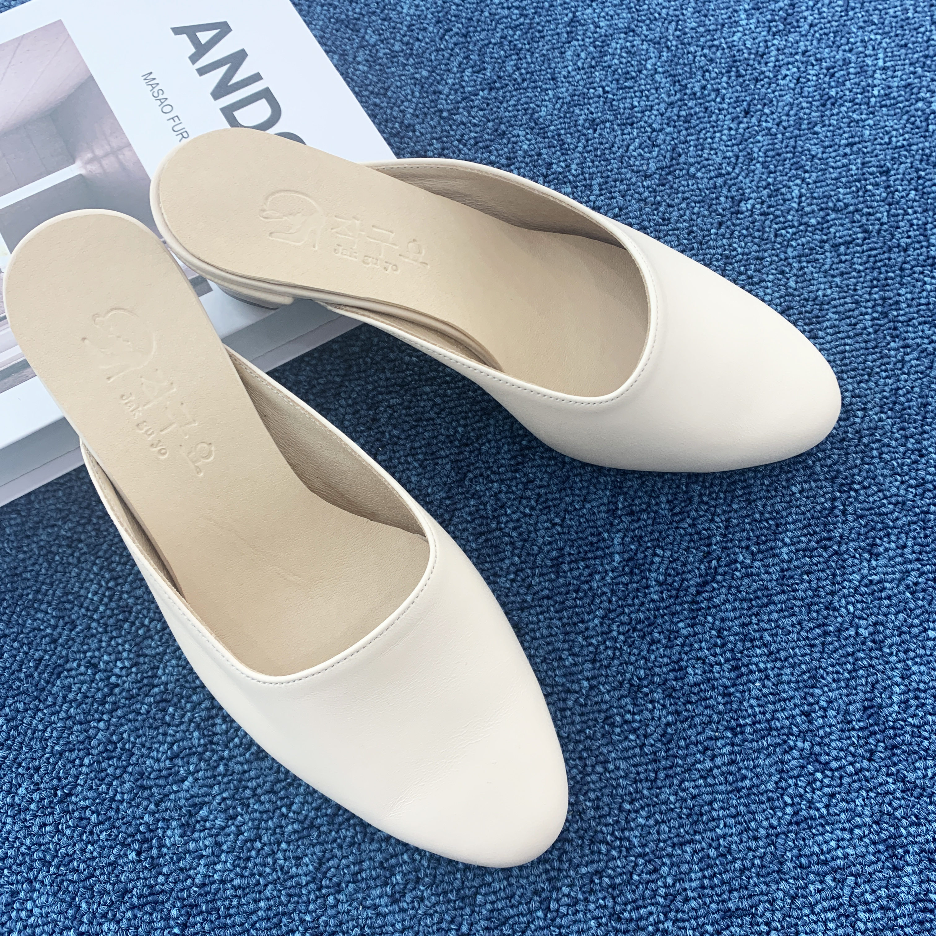 작구요 양가죽 진아이보리 인스퀘어 블로퍼 3cm