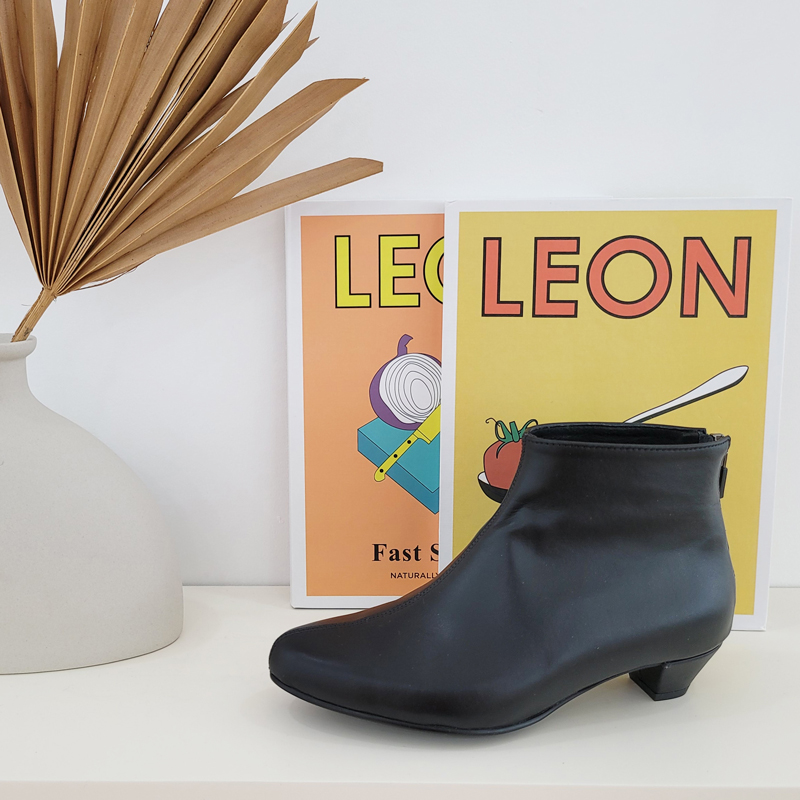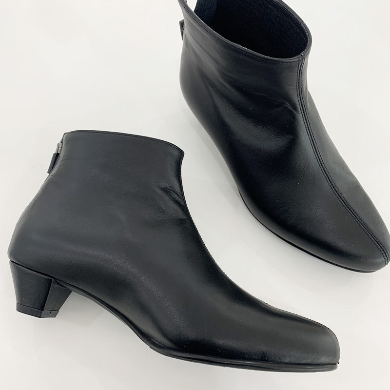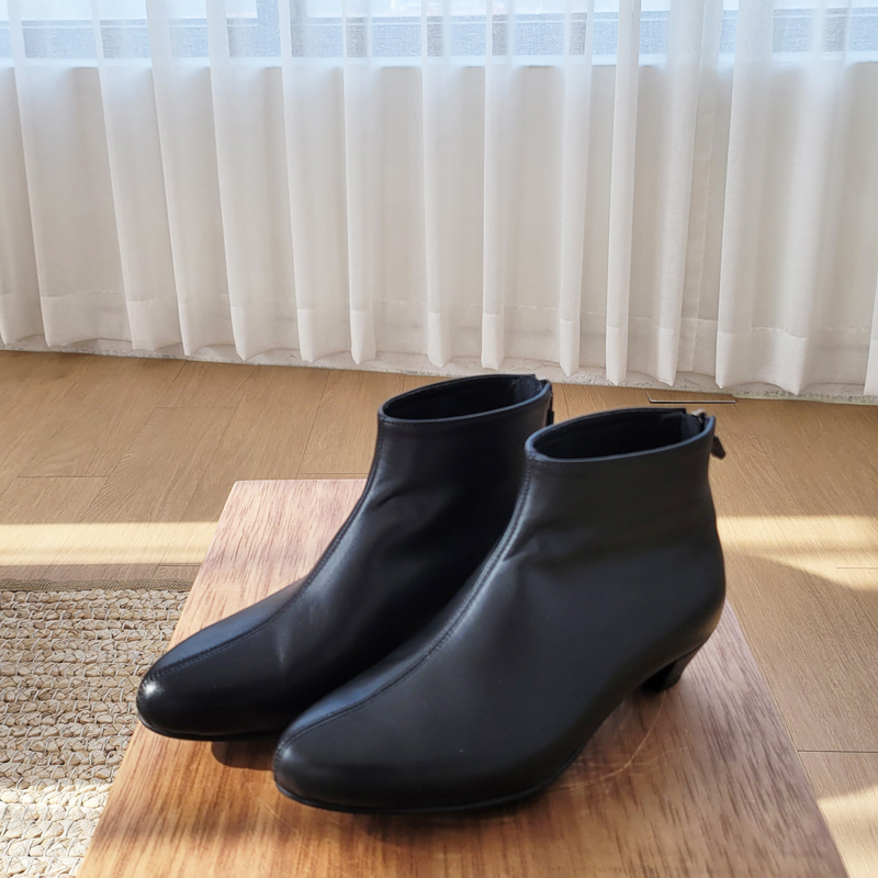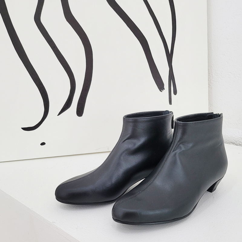 작구요 검정 소가죽 라운드코 로우 앵클부츠 3cm