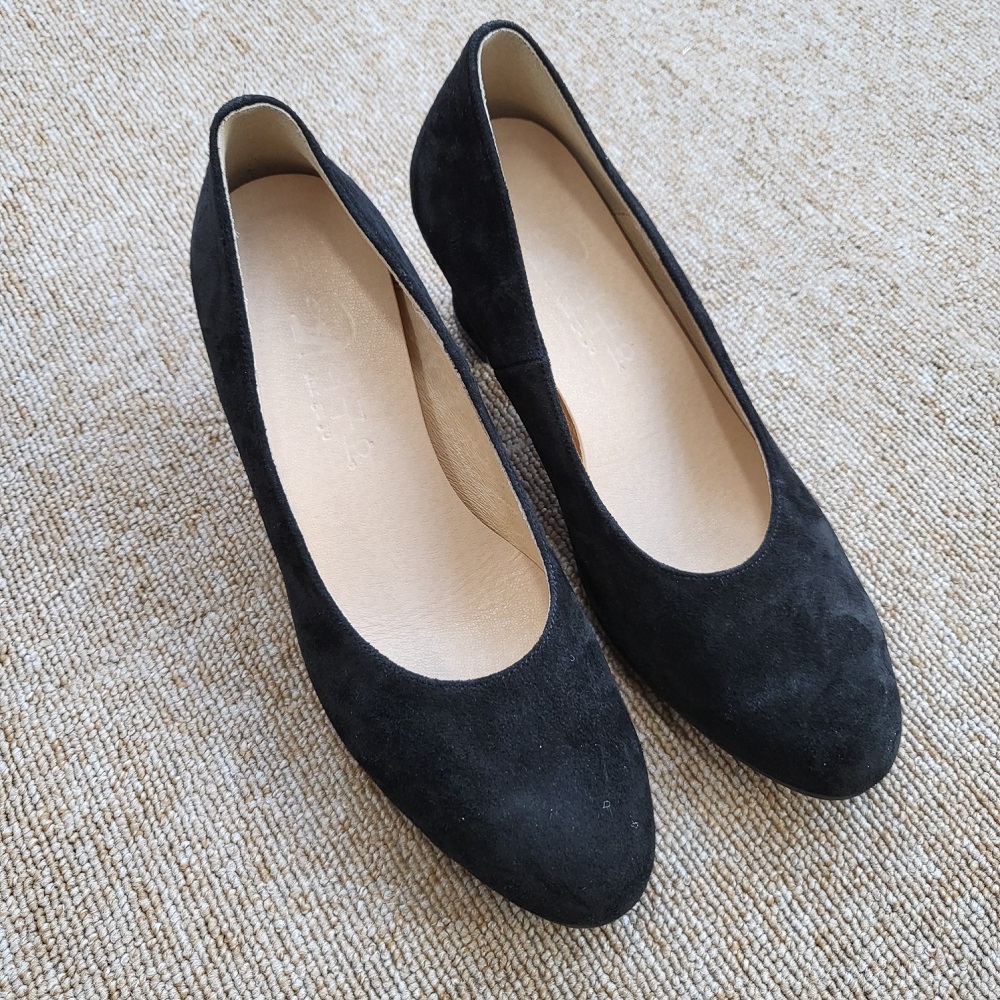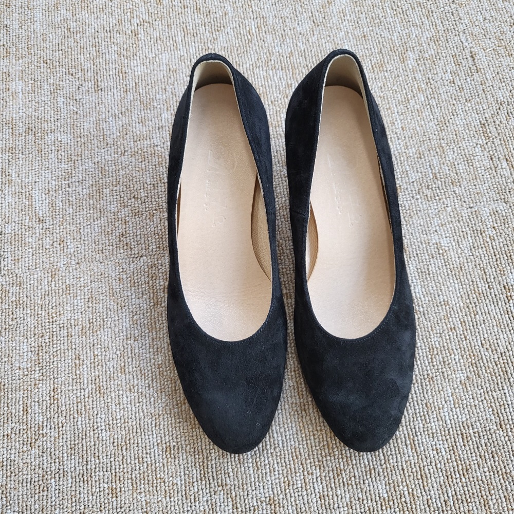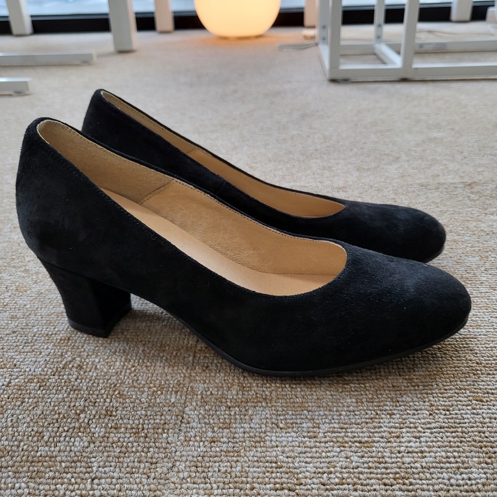 작구요 스웨이드 검정 펌프스 힐 5cm