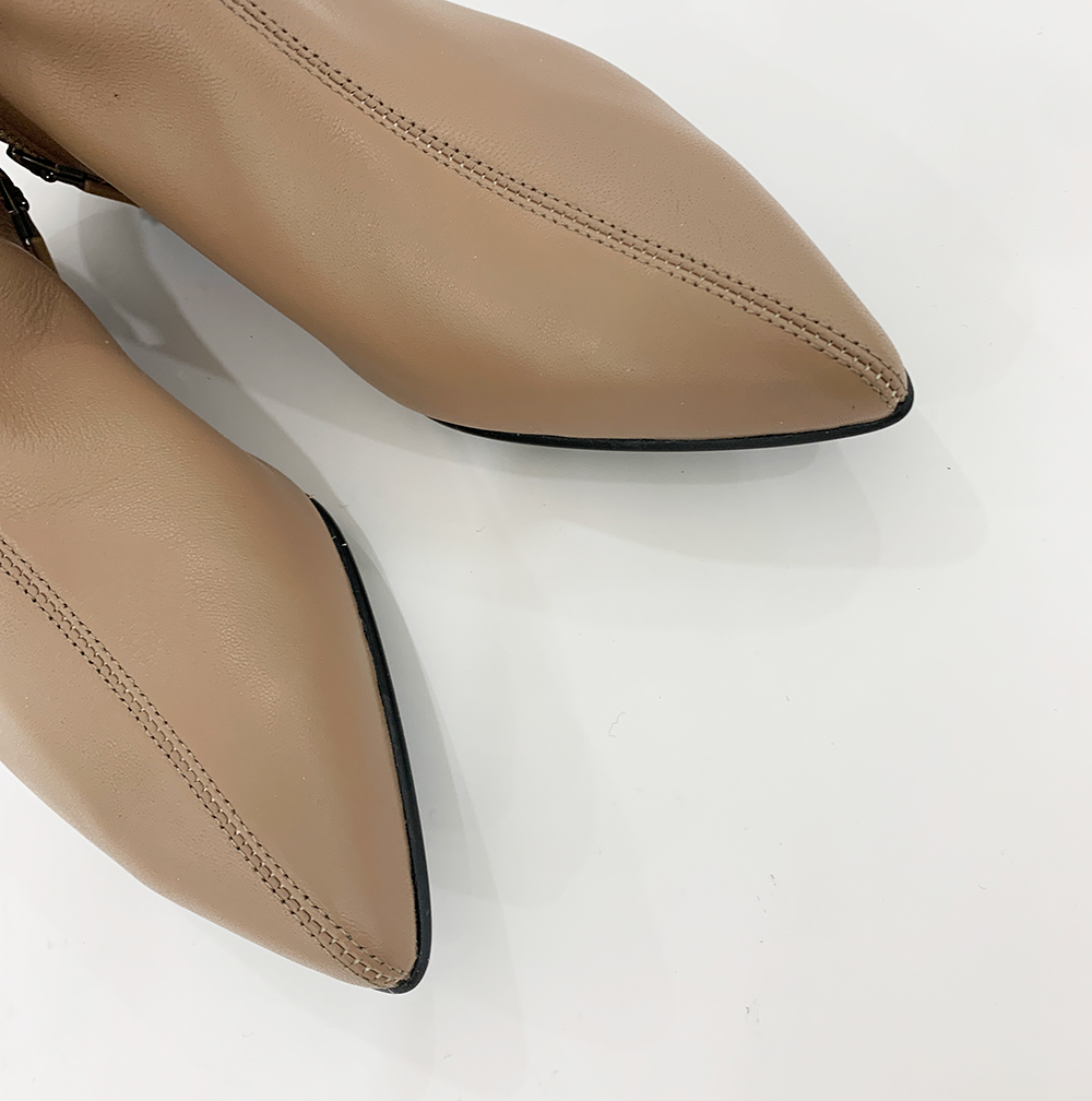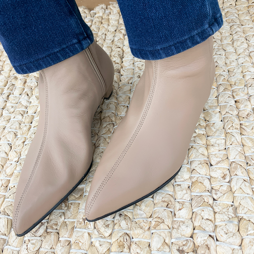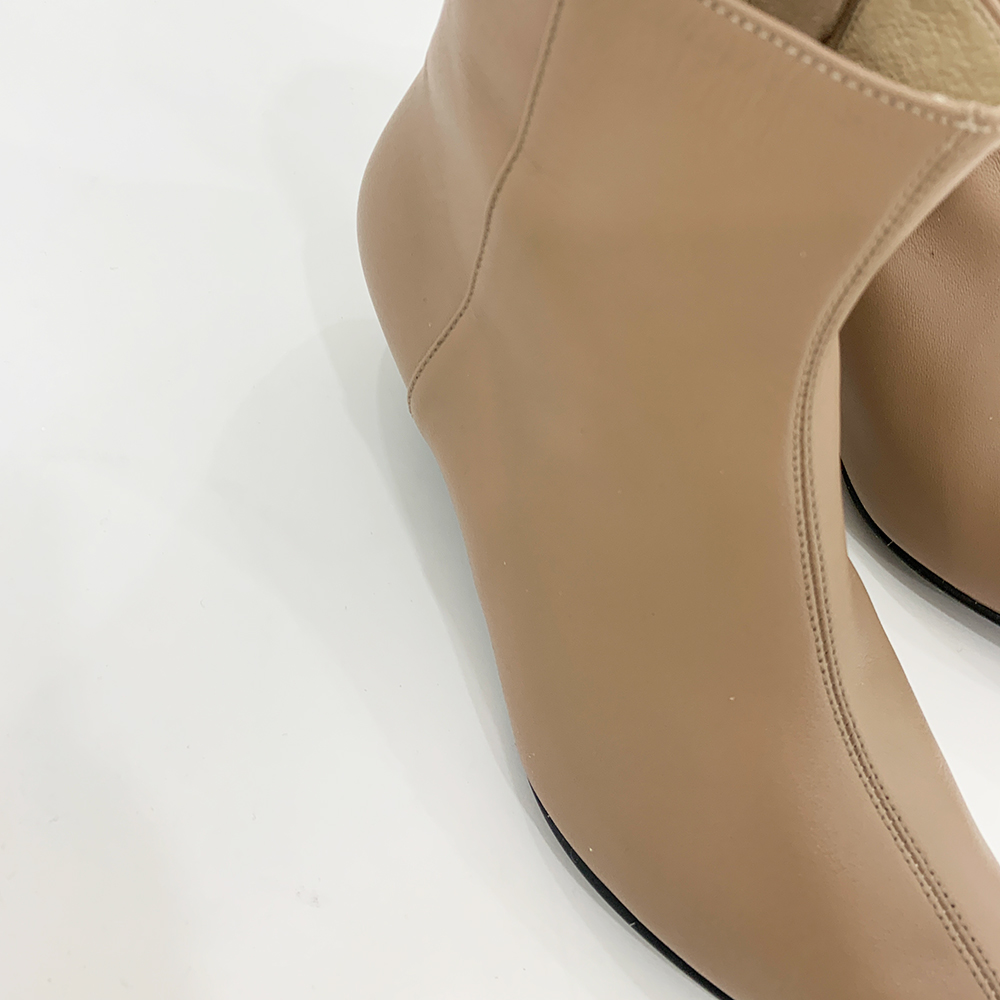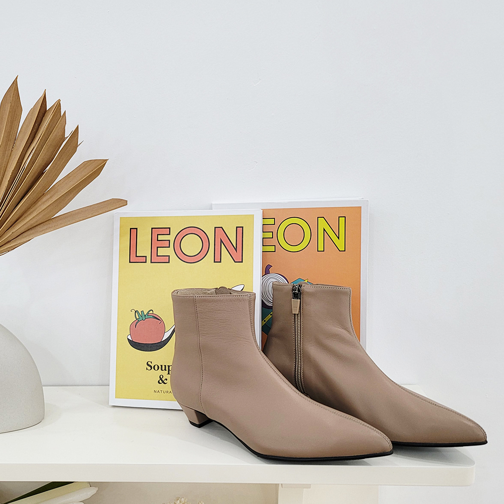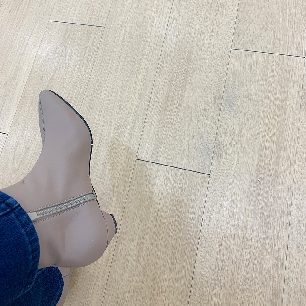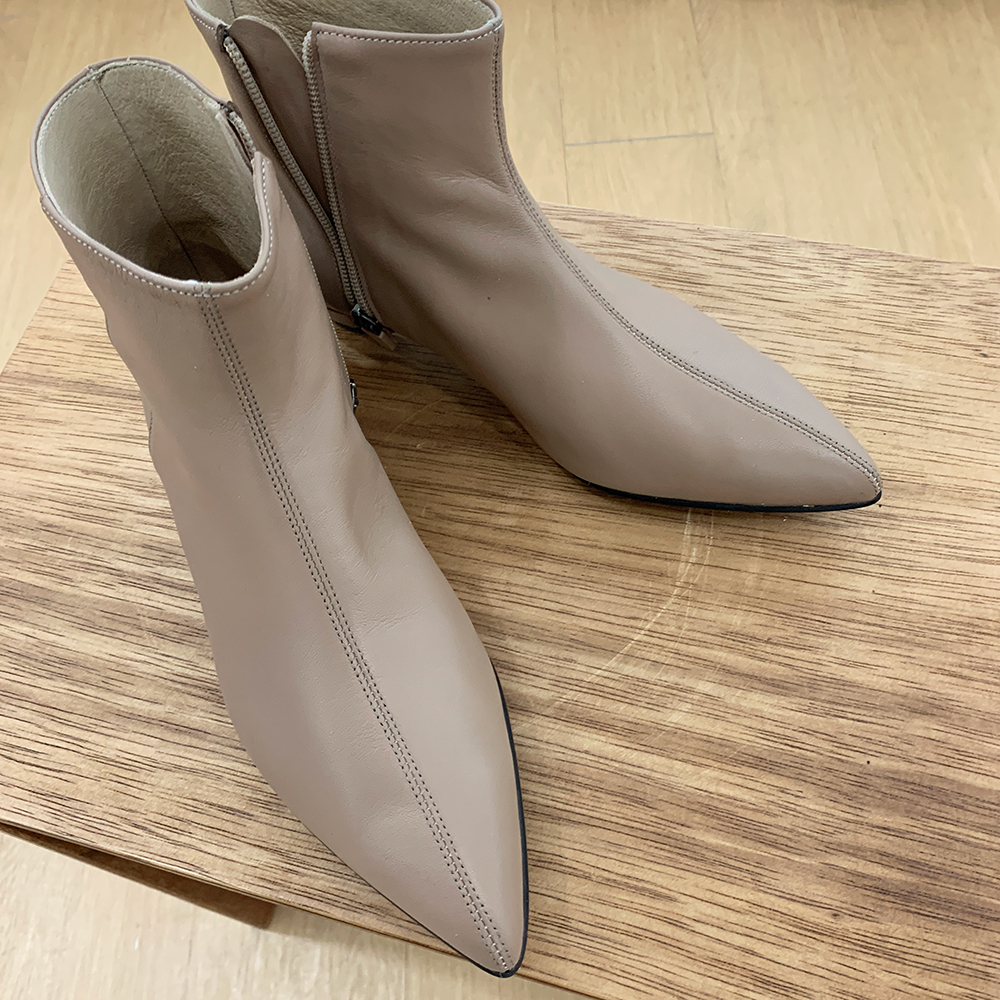 작구요 모카베이지 양가죽 뾰족코 하이 앵클부츠 3cm