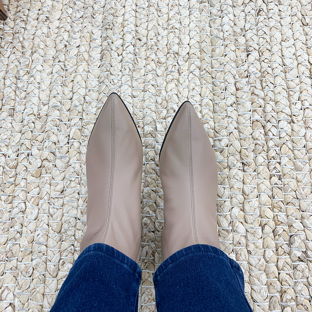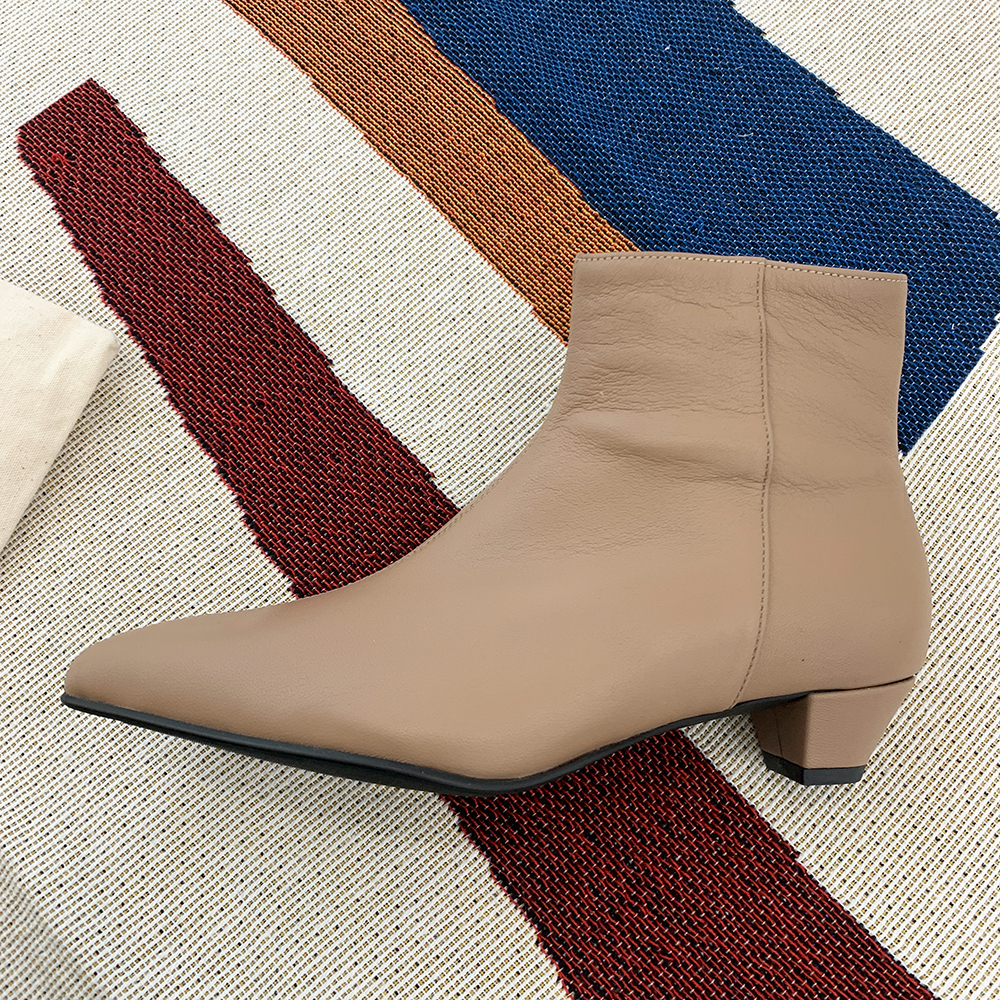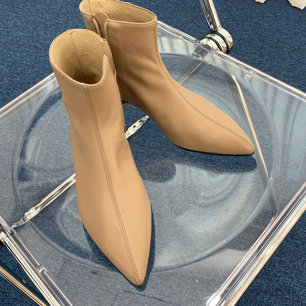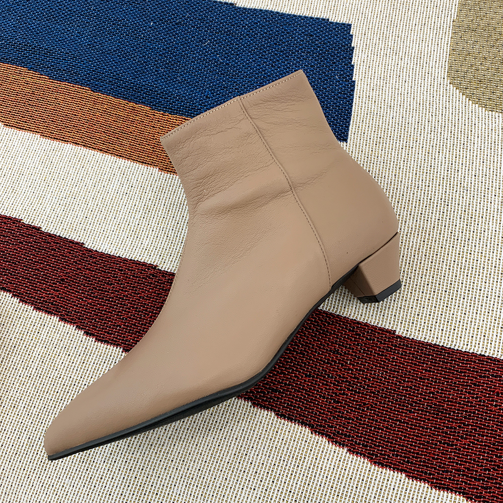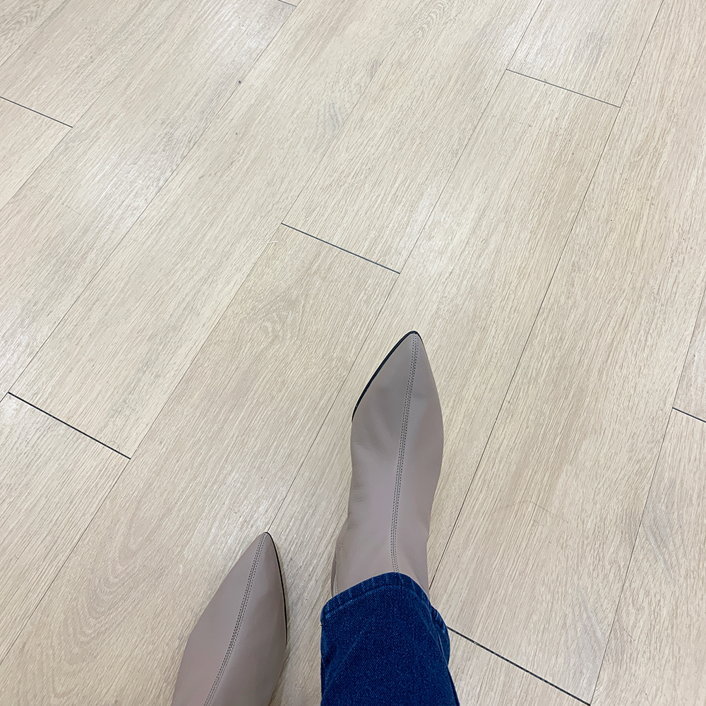 작구요 모카베이지 양가죽 뾰족코 하이 앵클부츠 3cm
