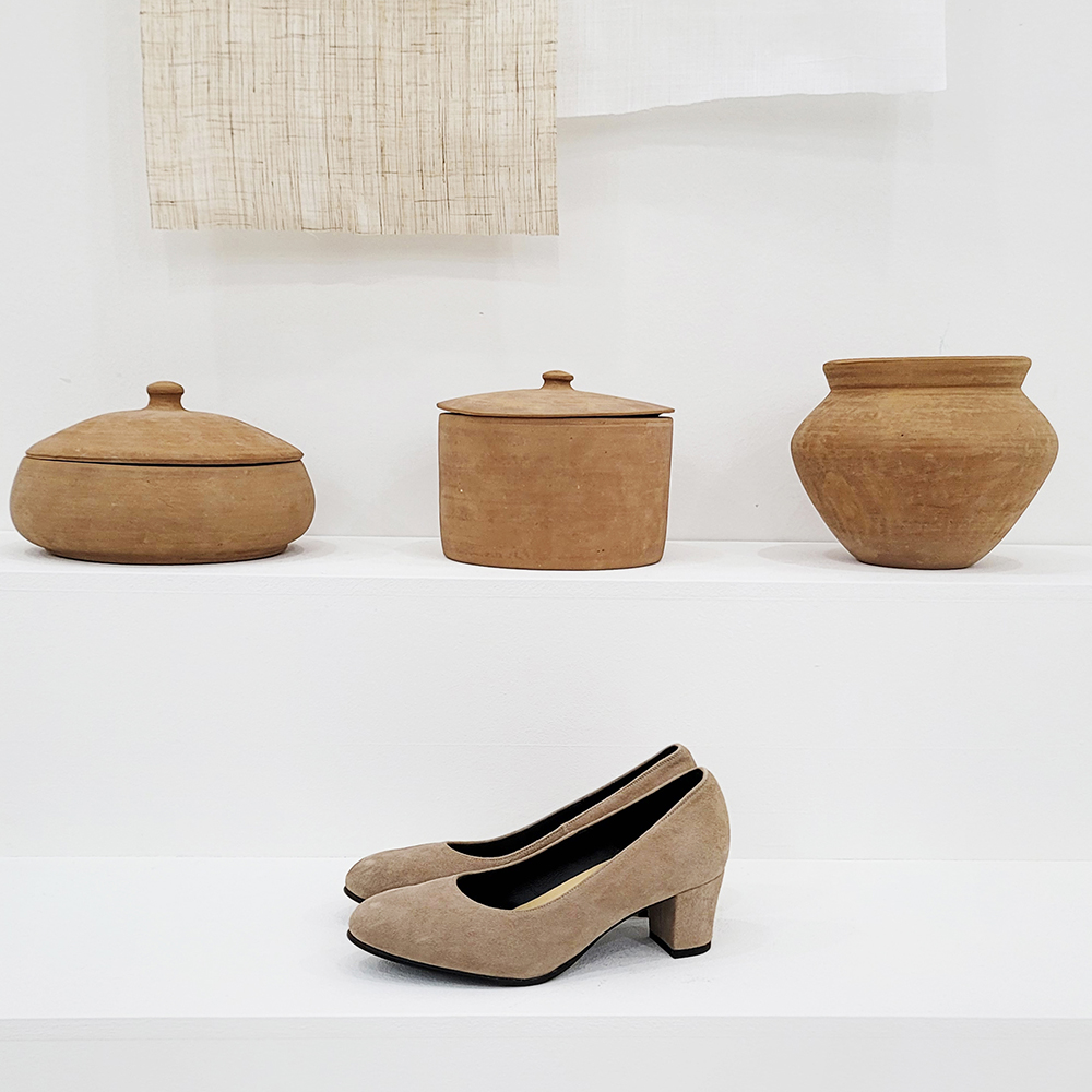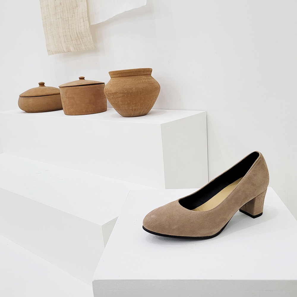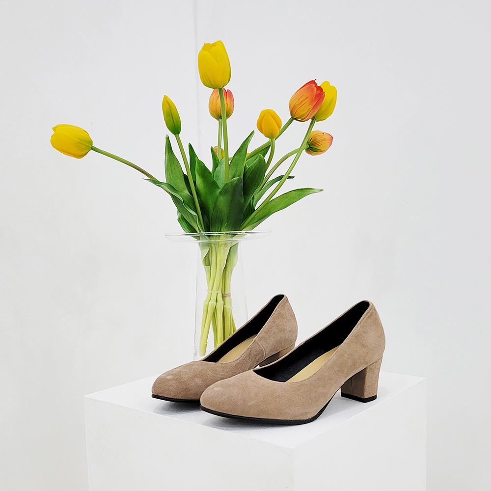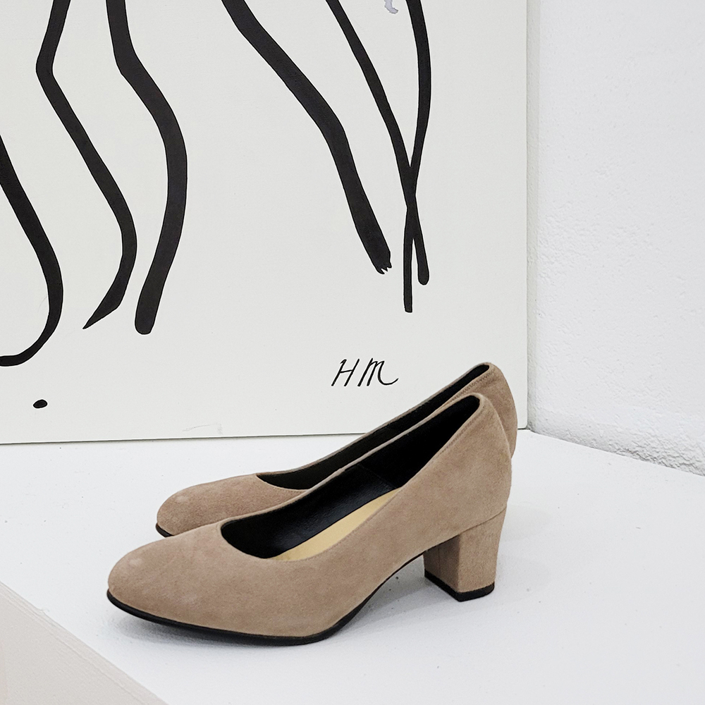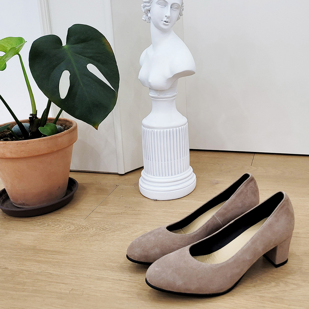 작구요 스웨이드 아이보리 펌프스 힐 5cm