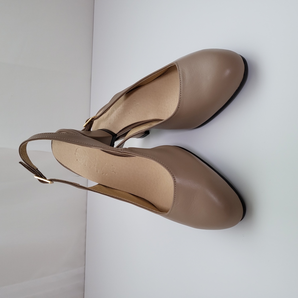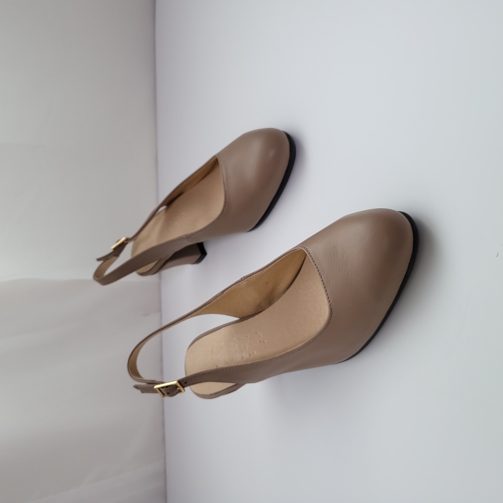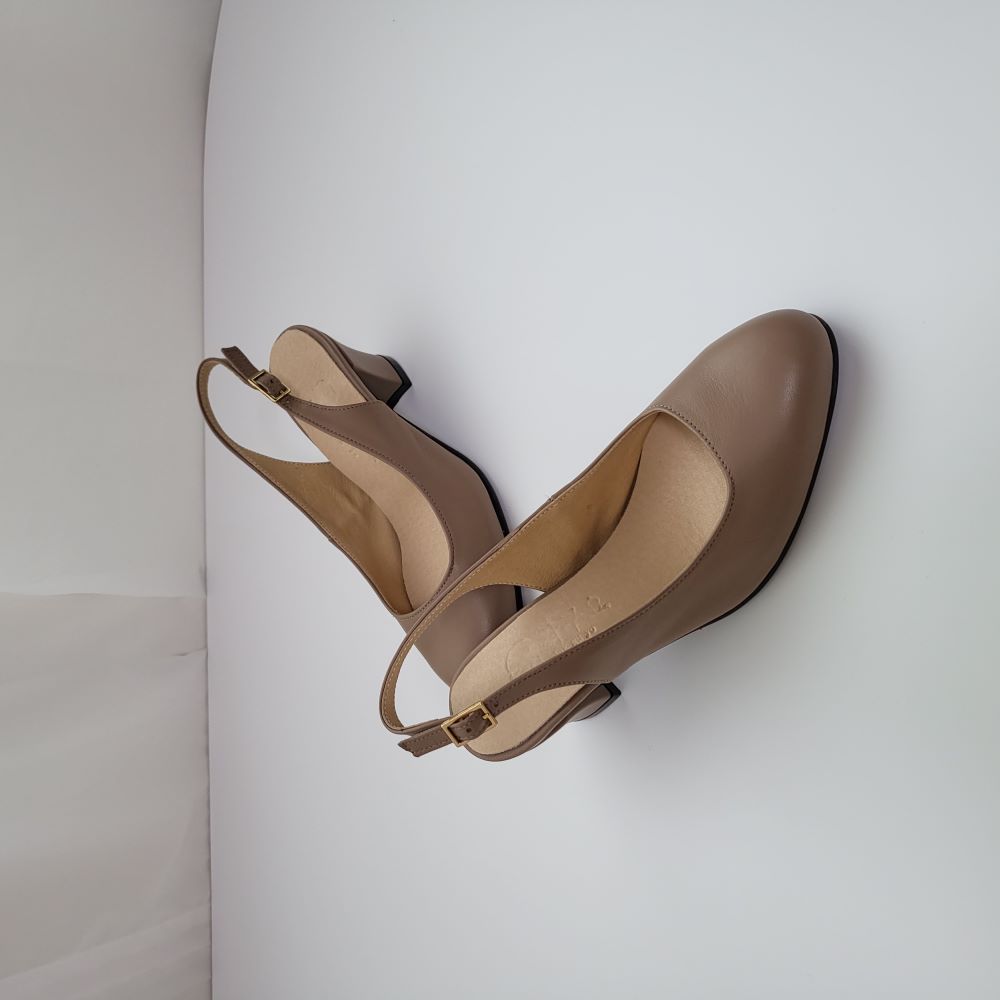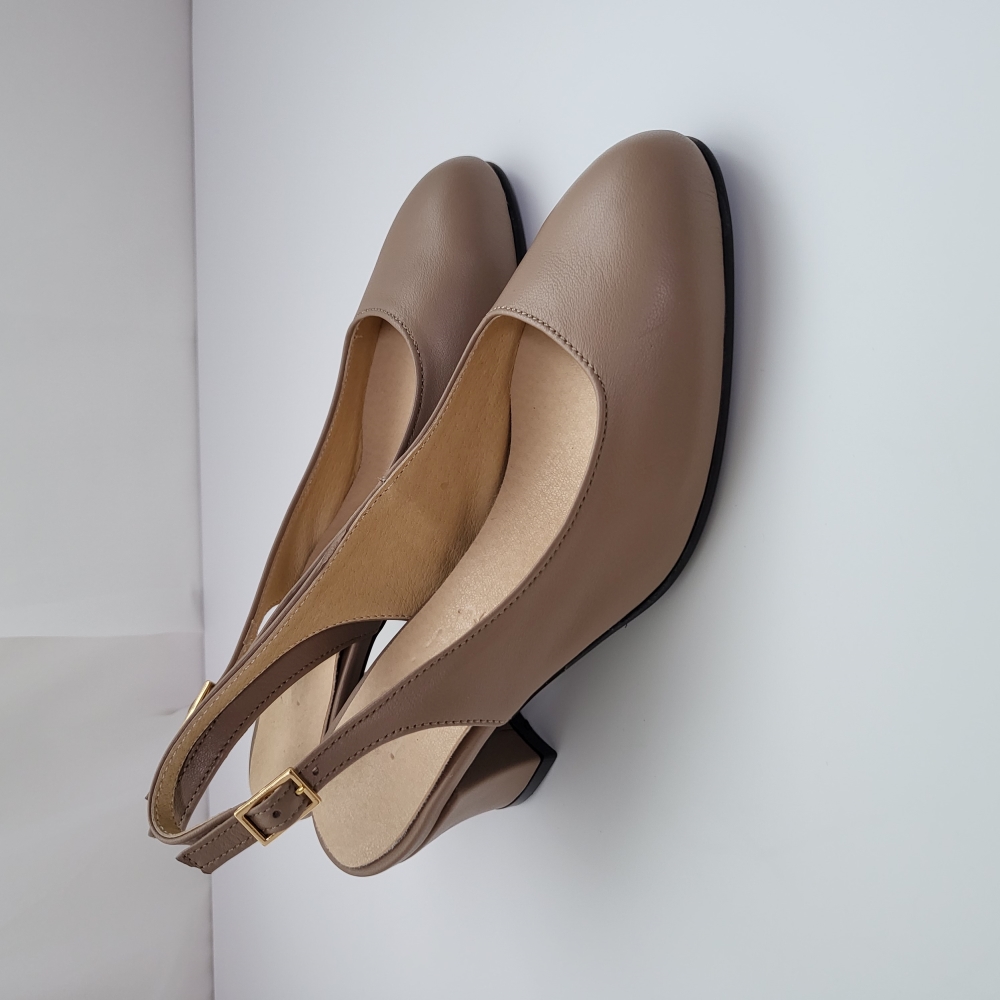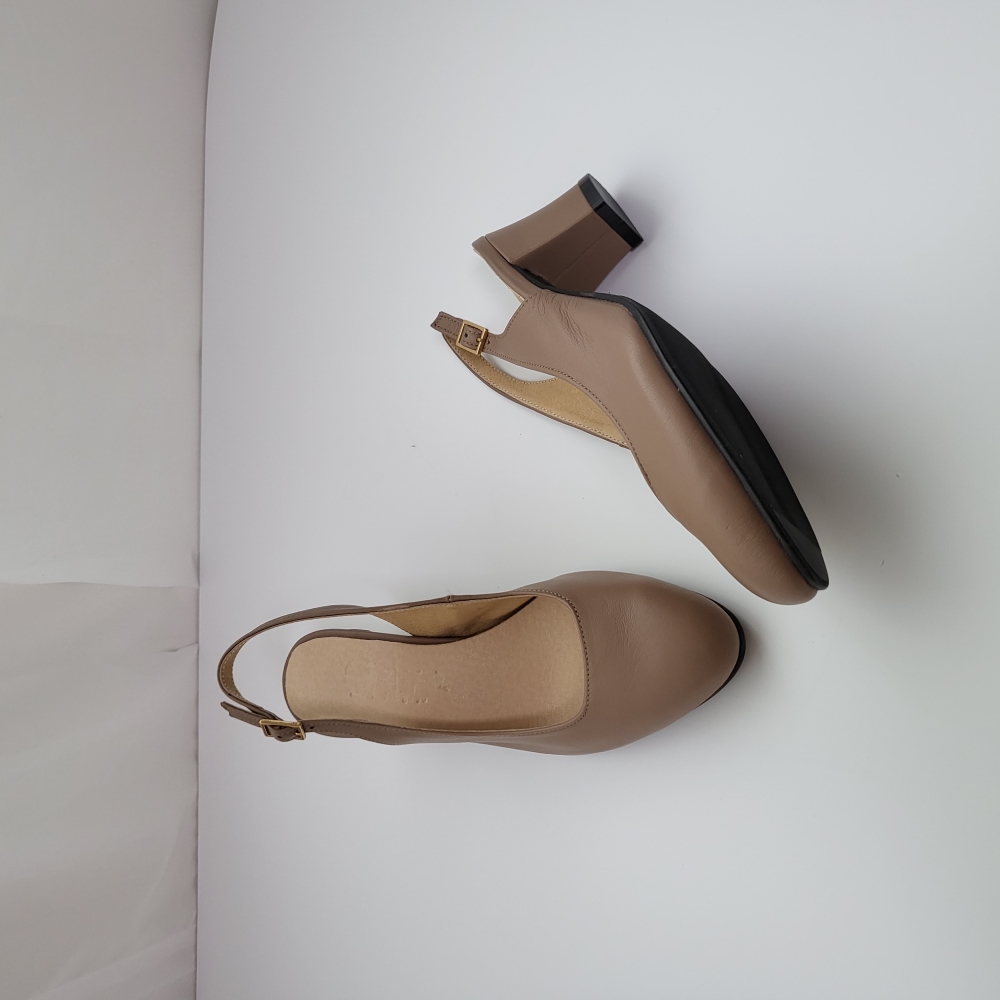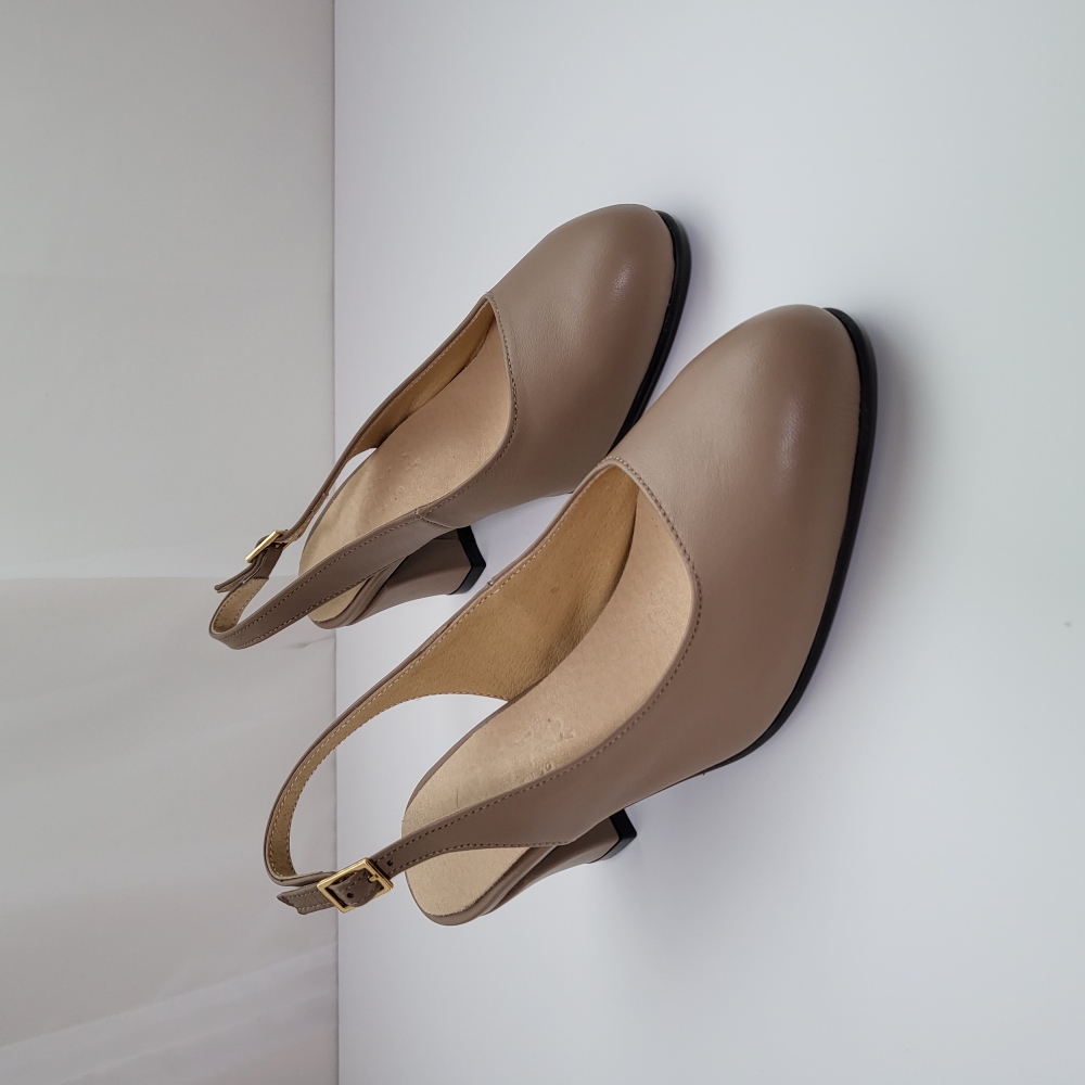작구요 양가죽 모카베이지 슬링백 힐 5cm
