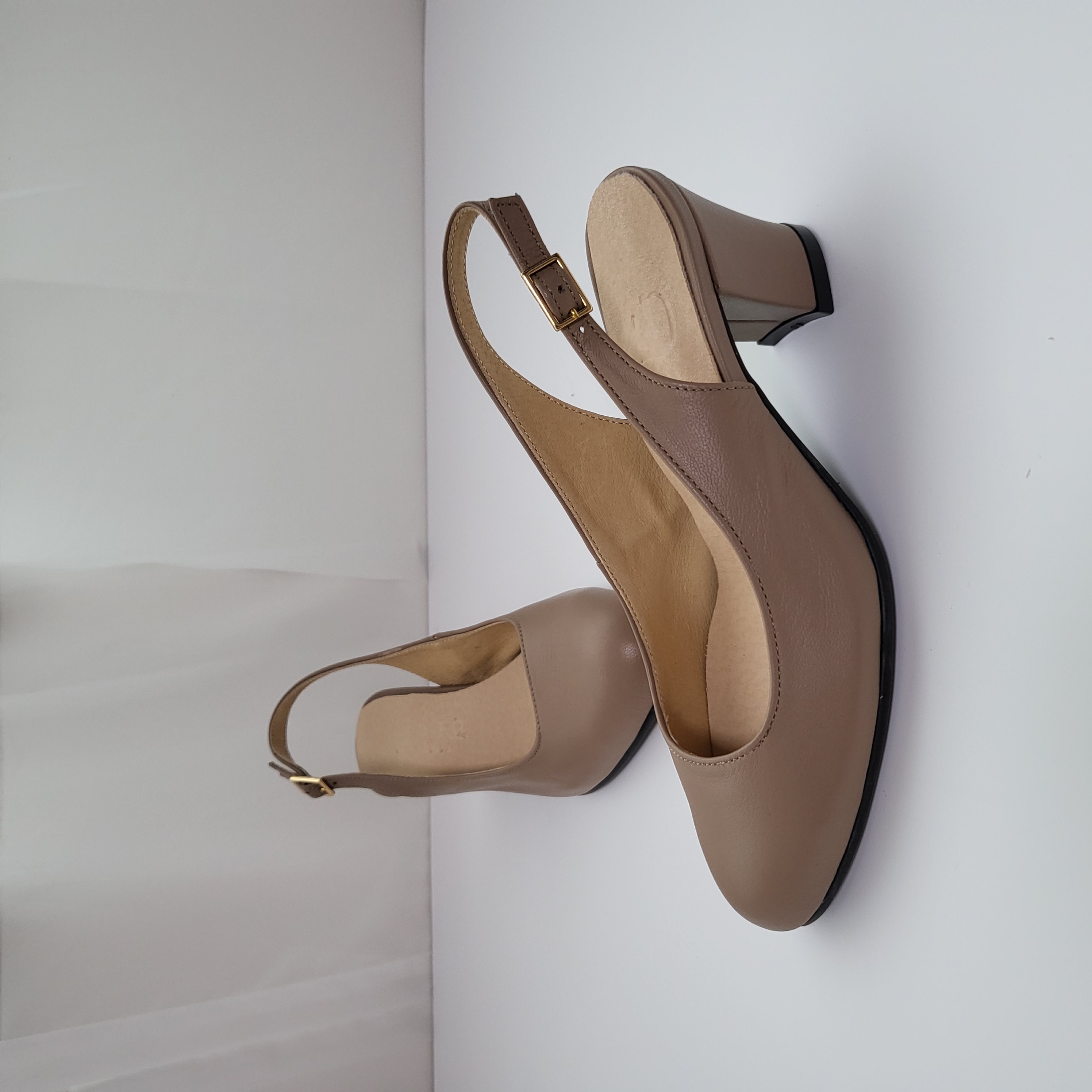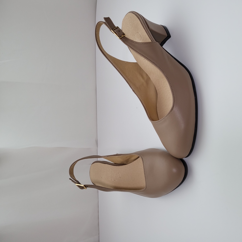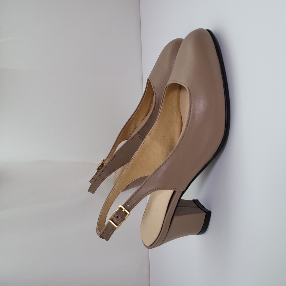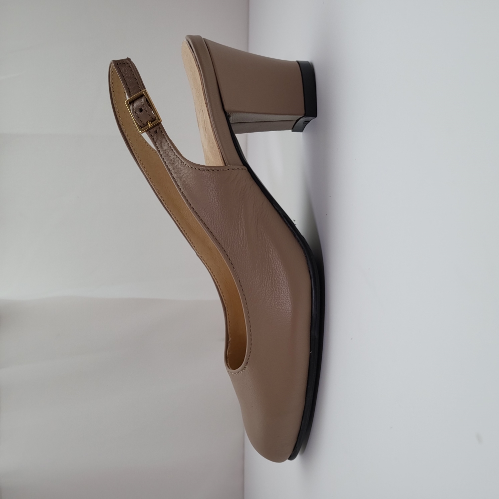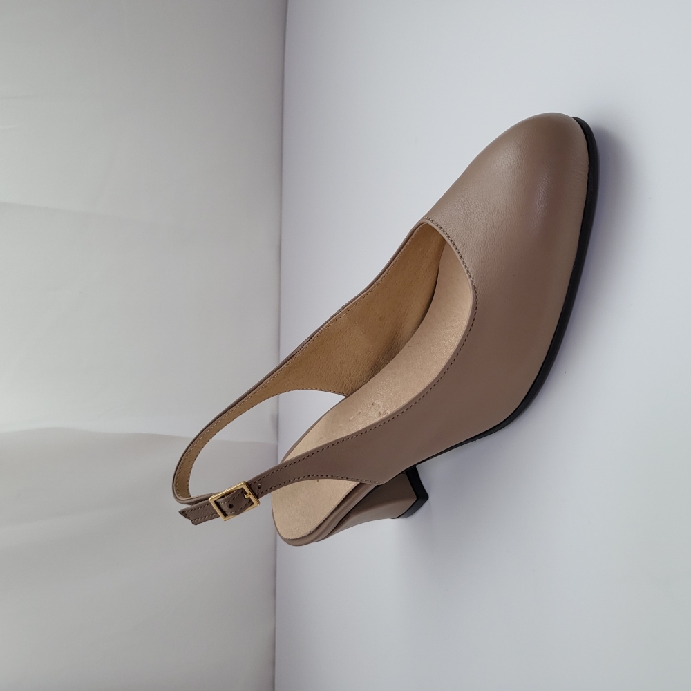 작구요 양가죽 모카베이지 슬링백 힐 5cm