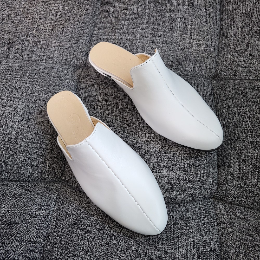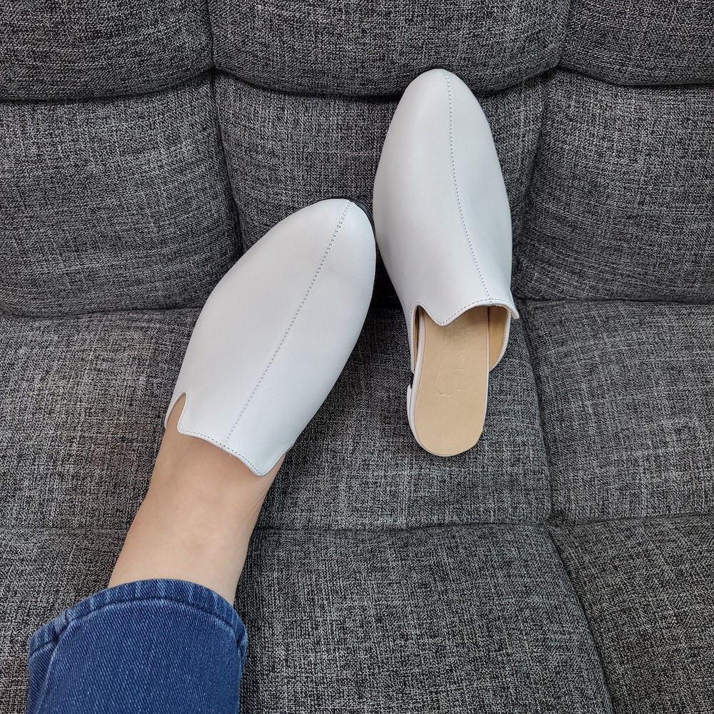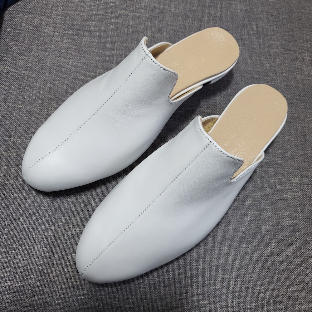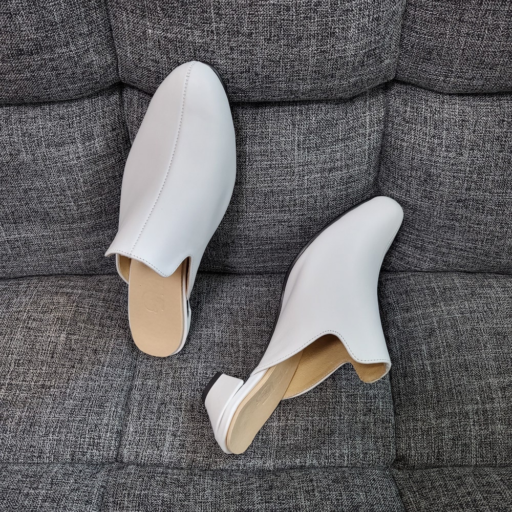 작구요 소가죽 흰색 미들라인 도트 블로퍼 3cm