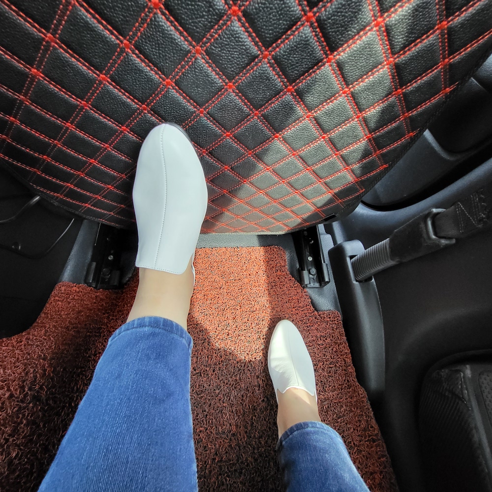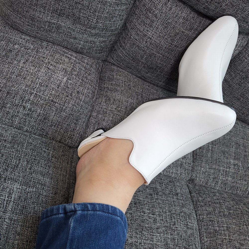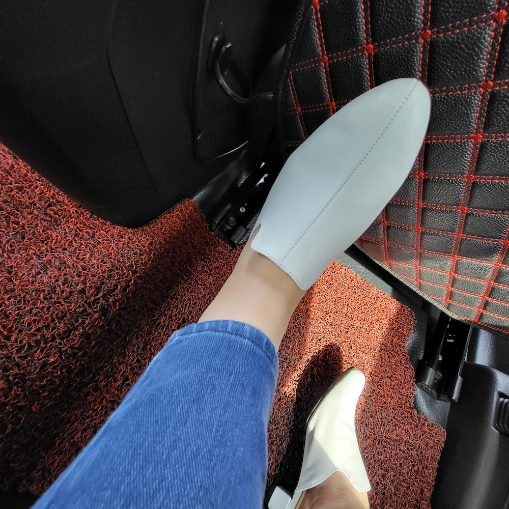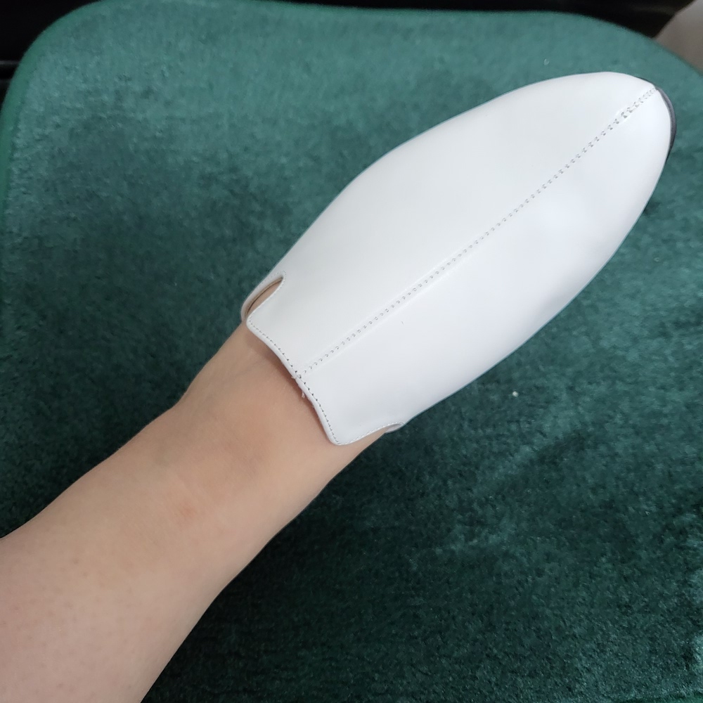 작구요 소가죽 흰색 미들라인 도트 블로퍼 3cm