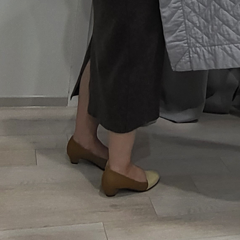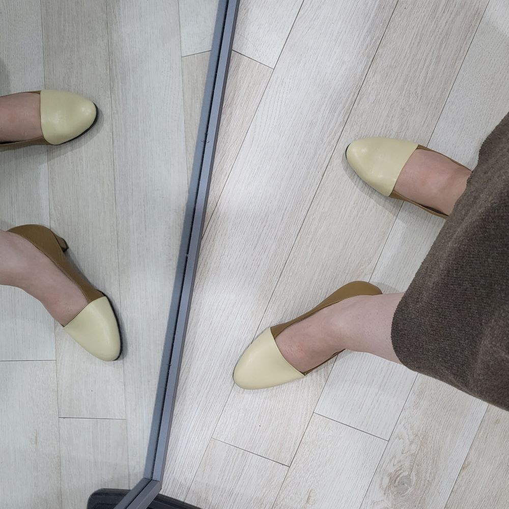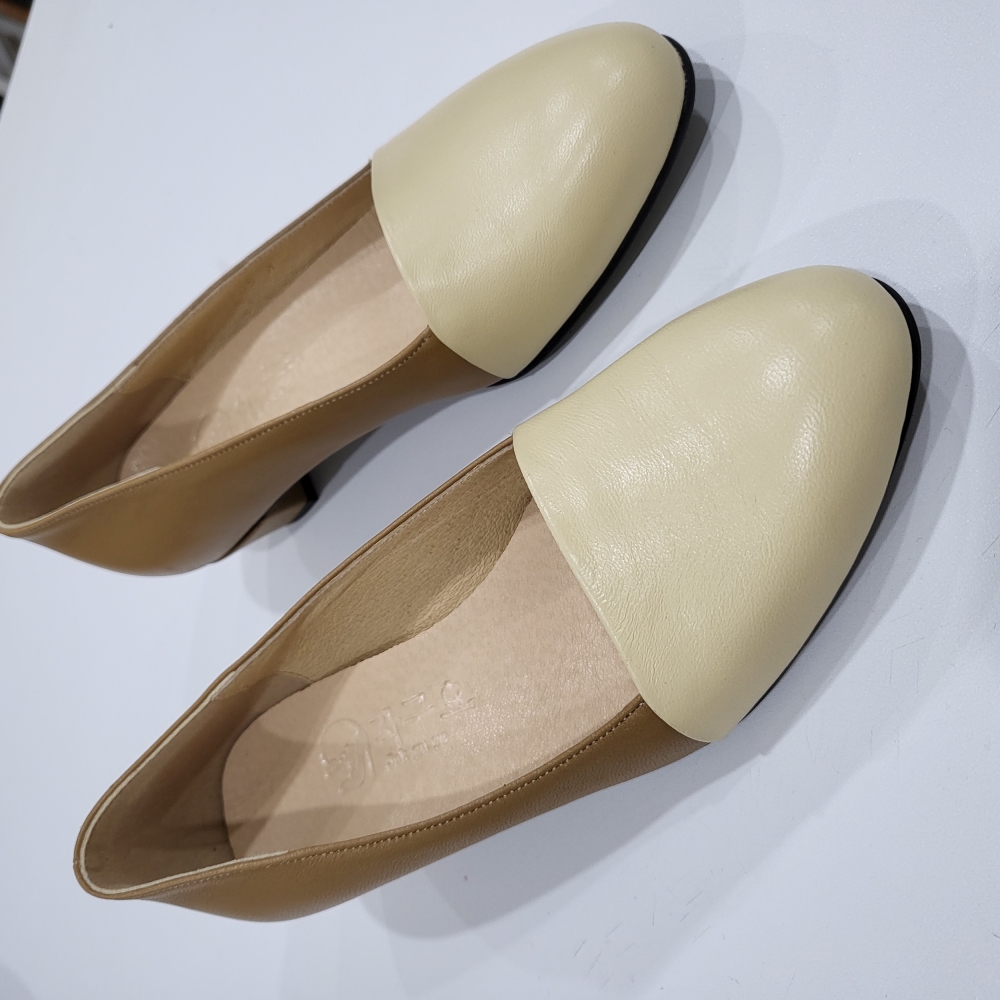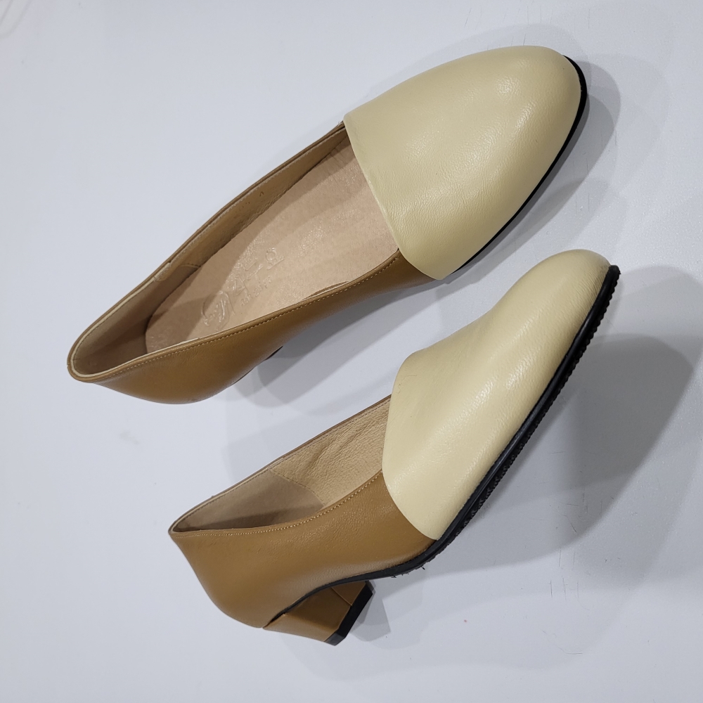 작구요 양가죽 배색 구두 베이지/브라운 3cm