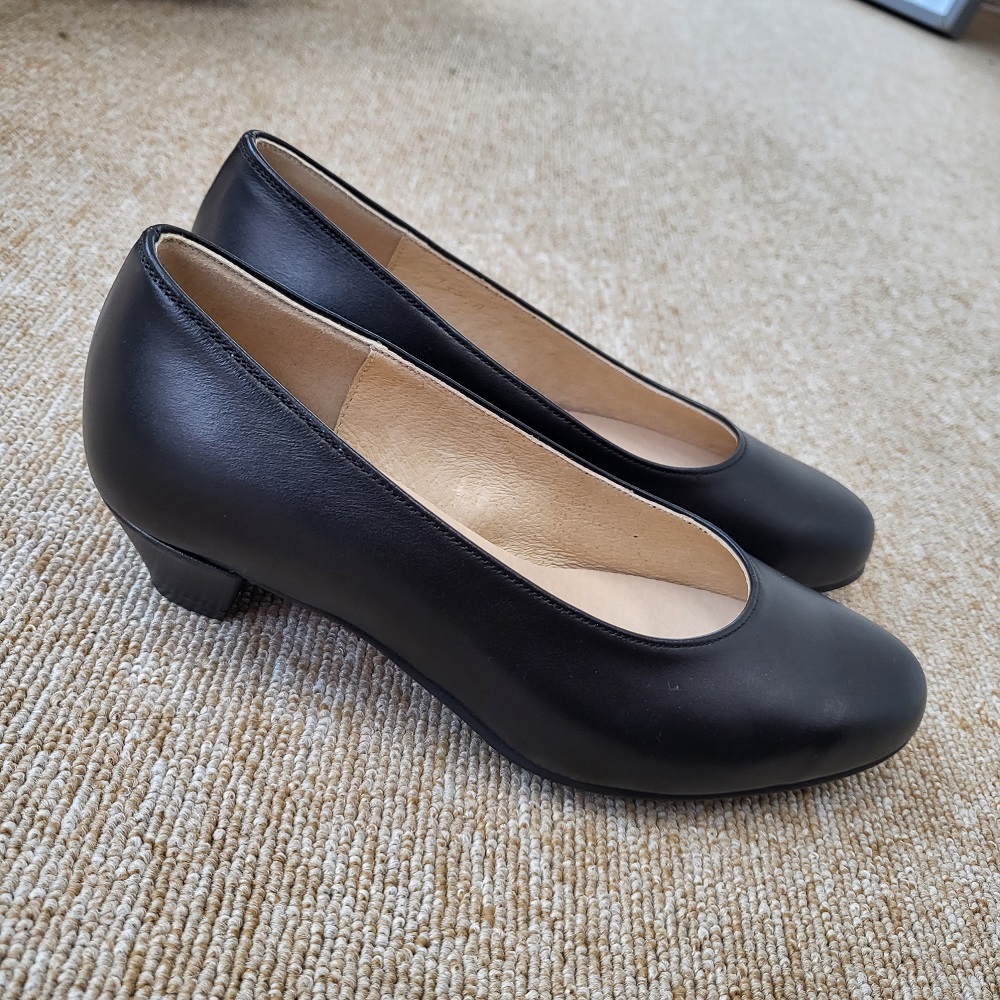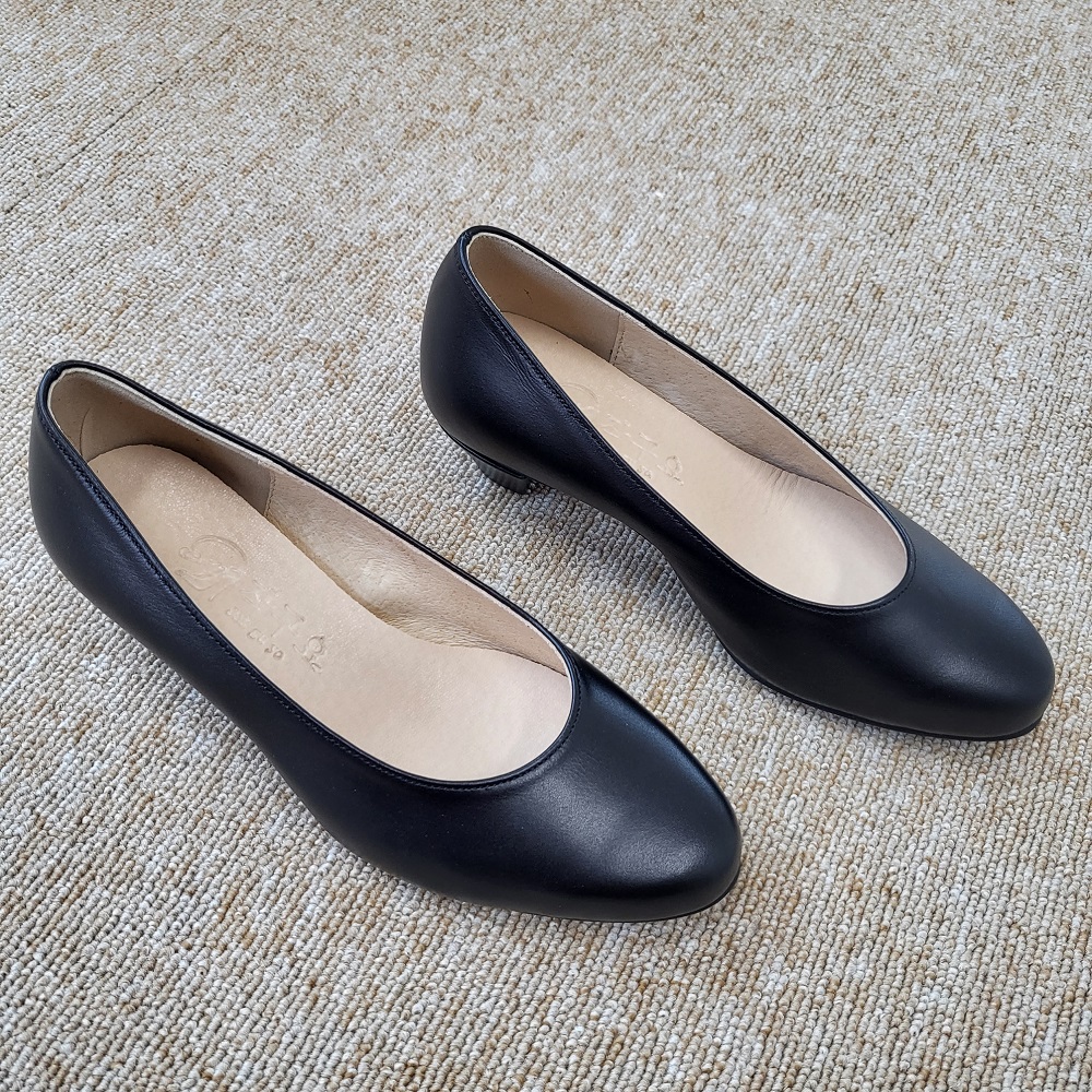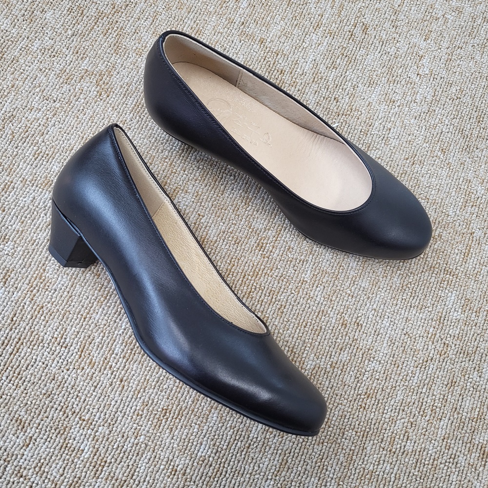 작구요 소가죽 검정 펌프스 힐 3cm