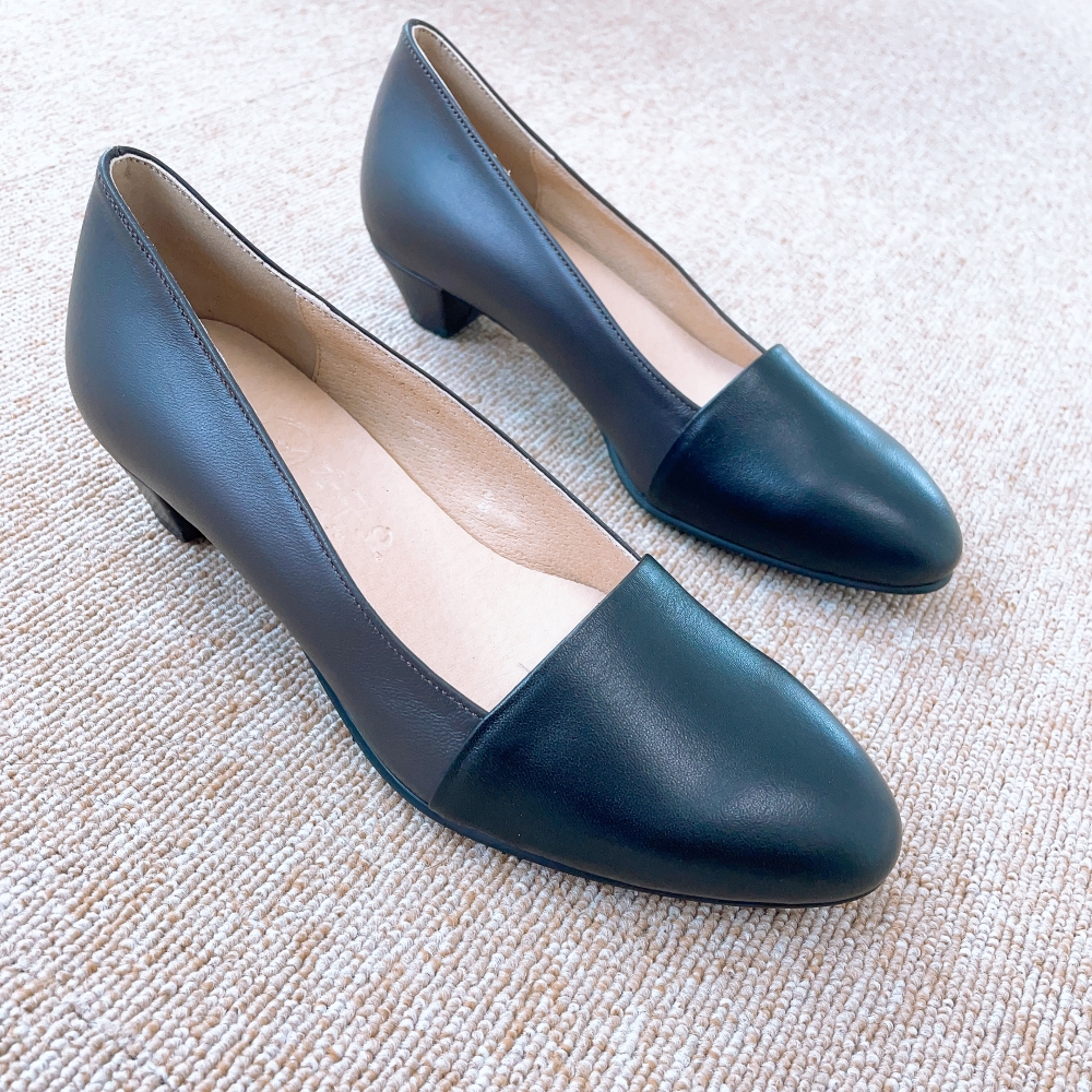 작구요 양가죽 배색 검은계열배색 구두 3cm