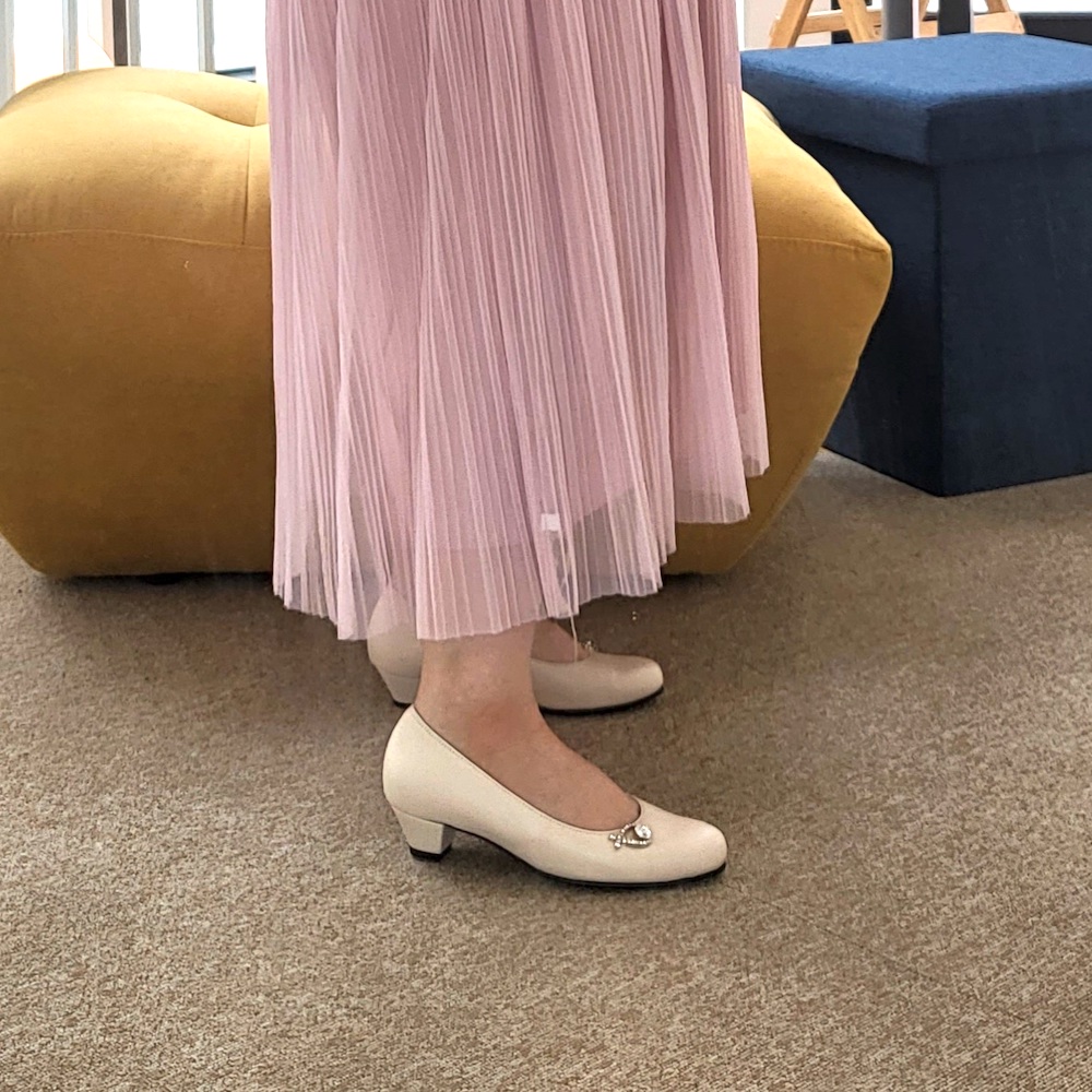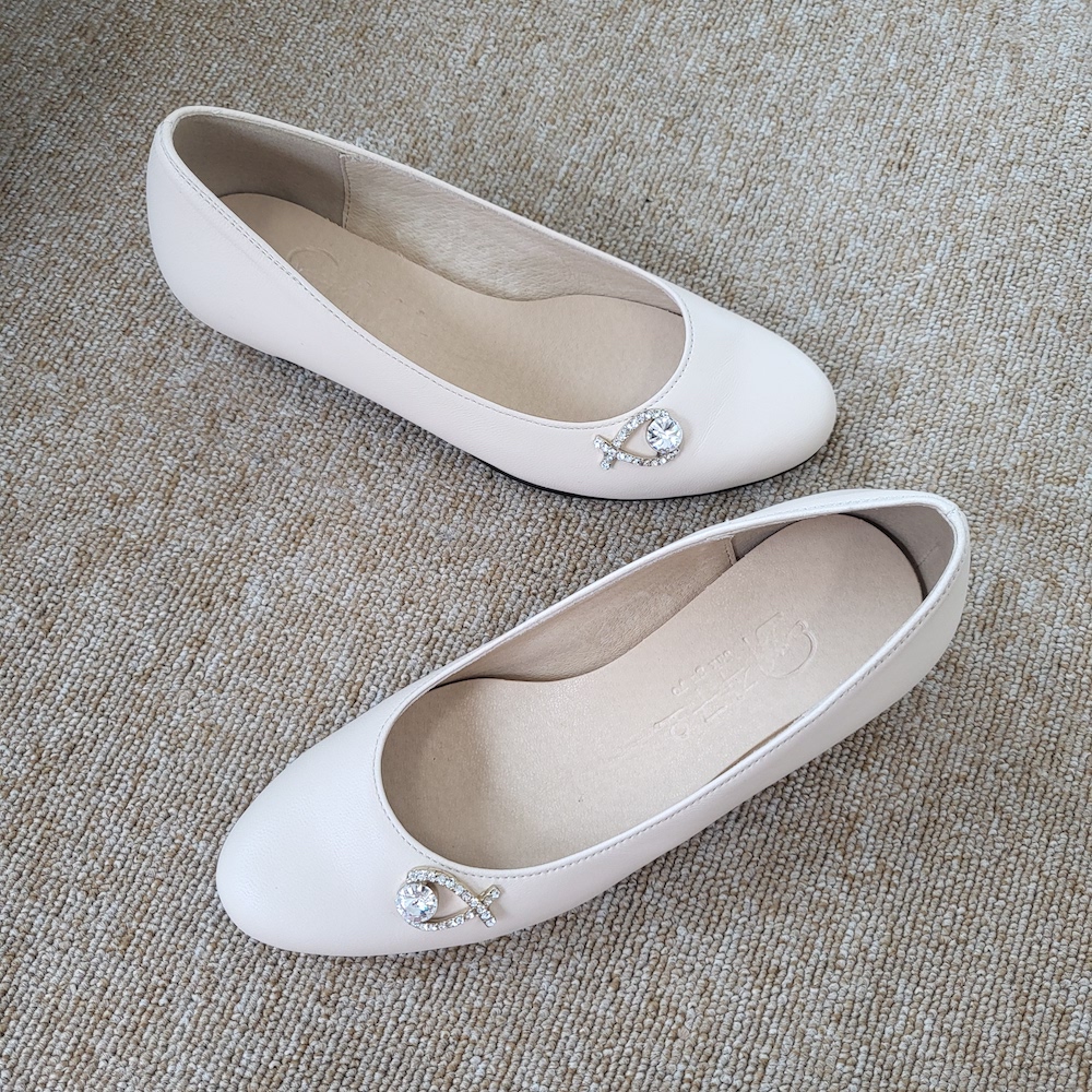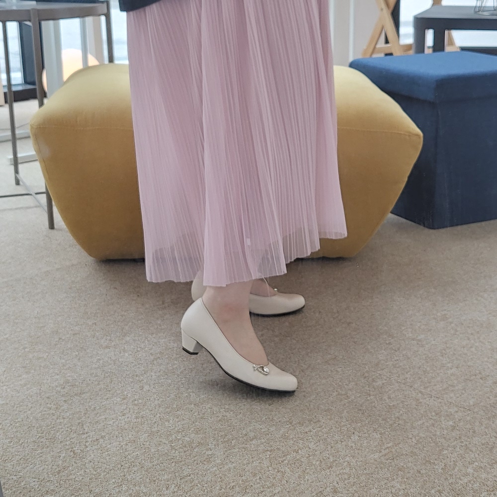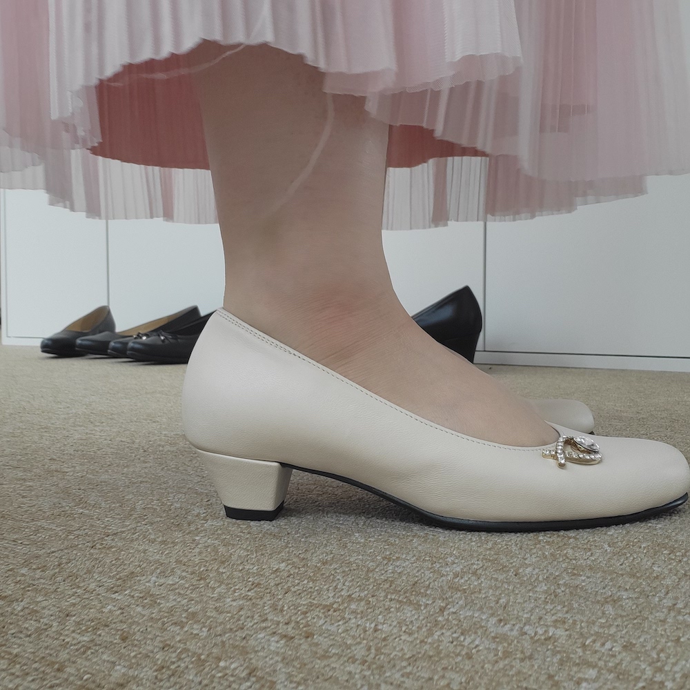 작구요 양가죽 진아이보리 다이아 펌프스 힐 3cm