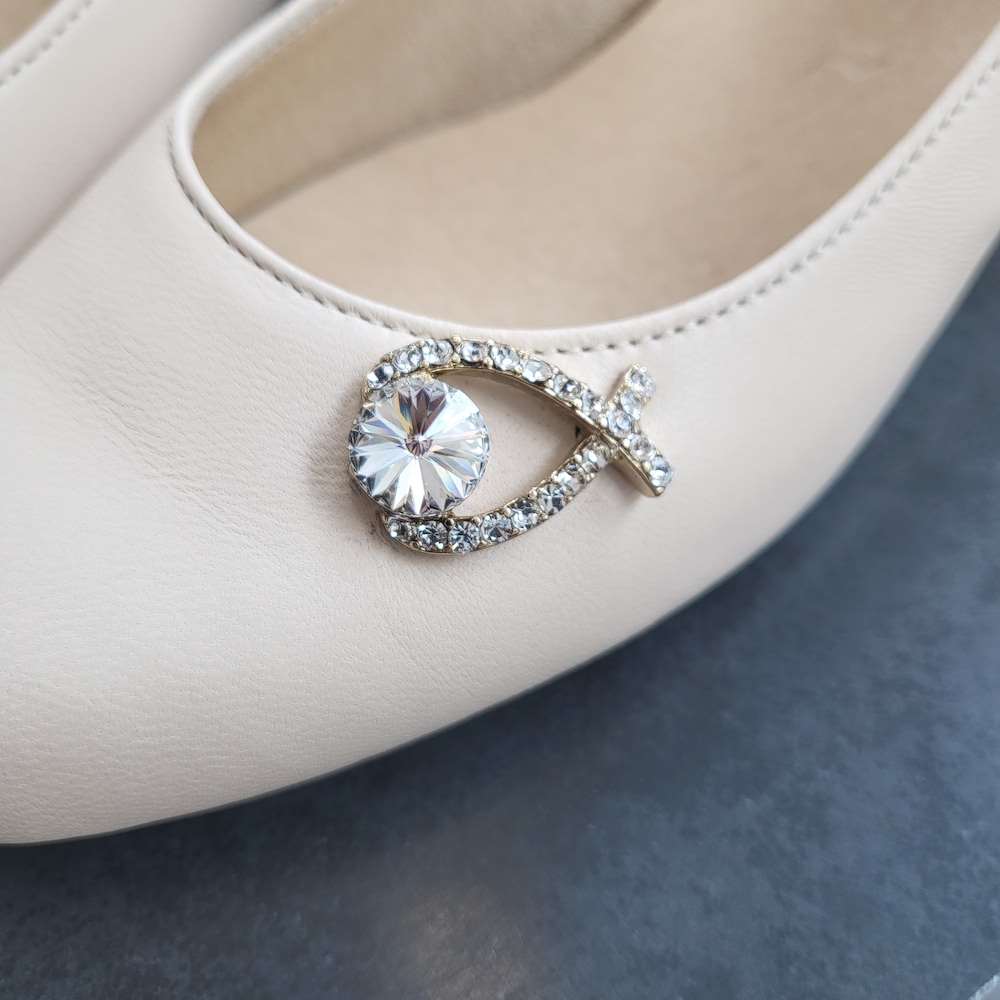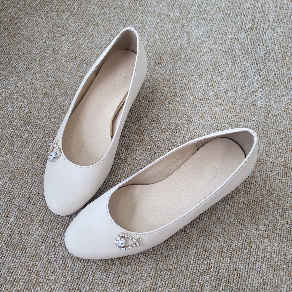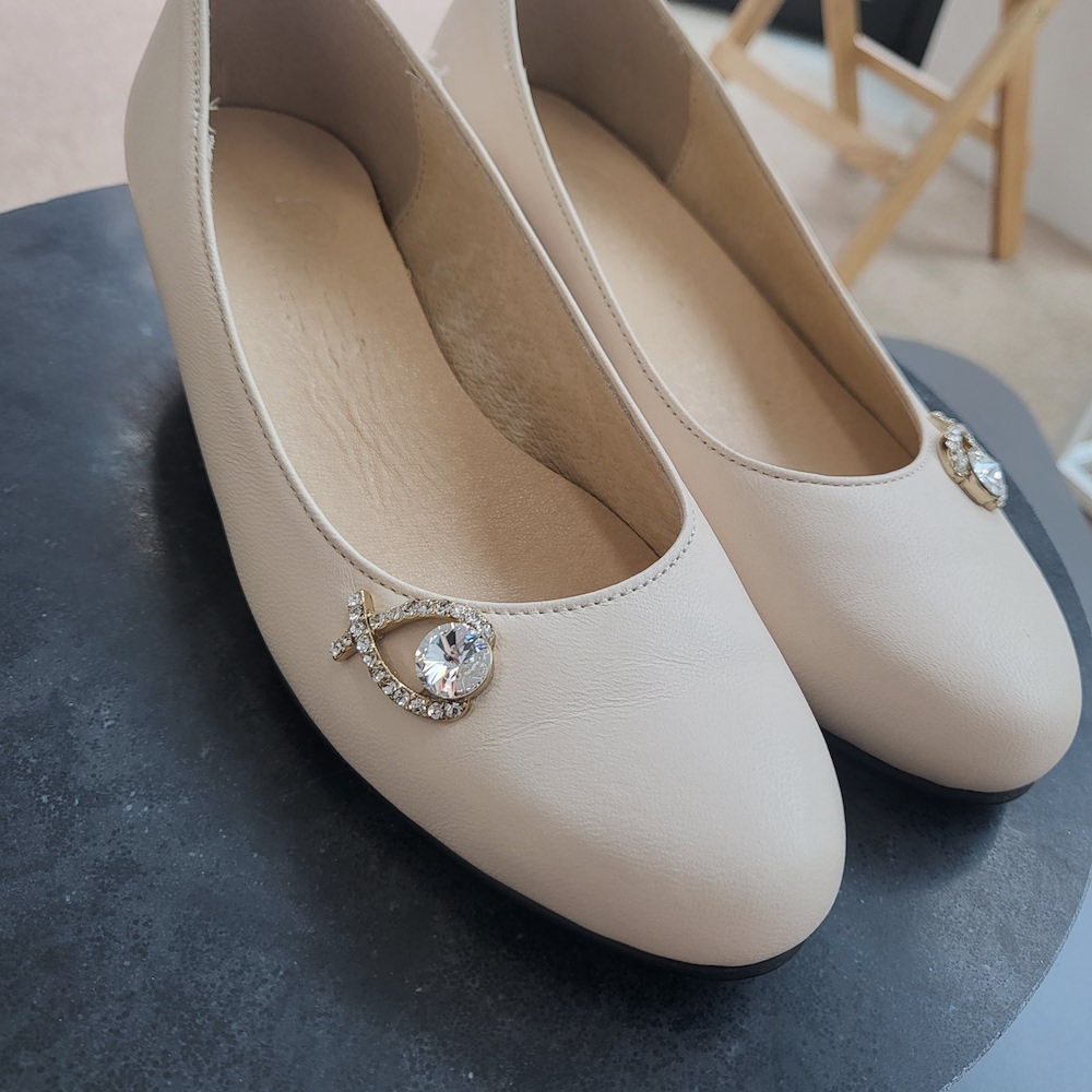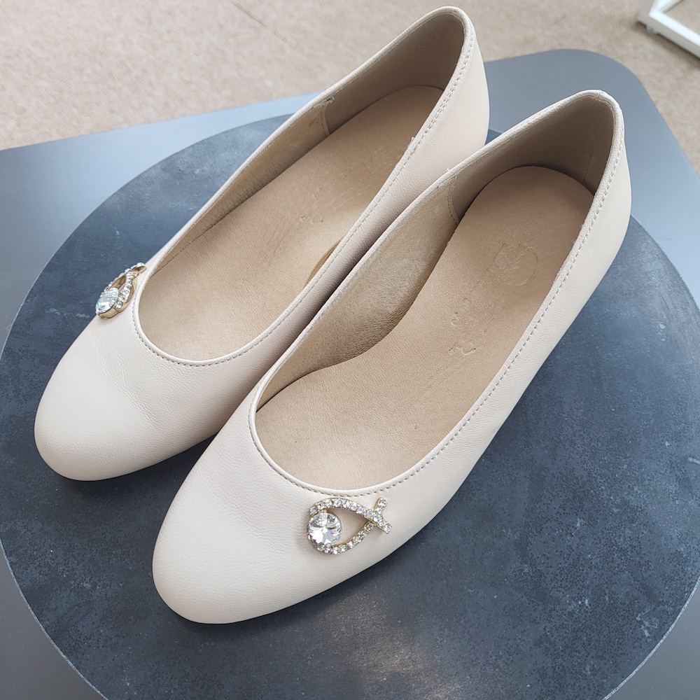 작구요 양가죽 진아이보리 다이아 펌프스 힐 3cm