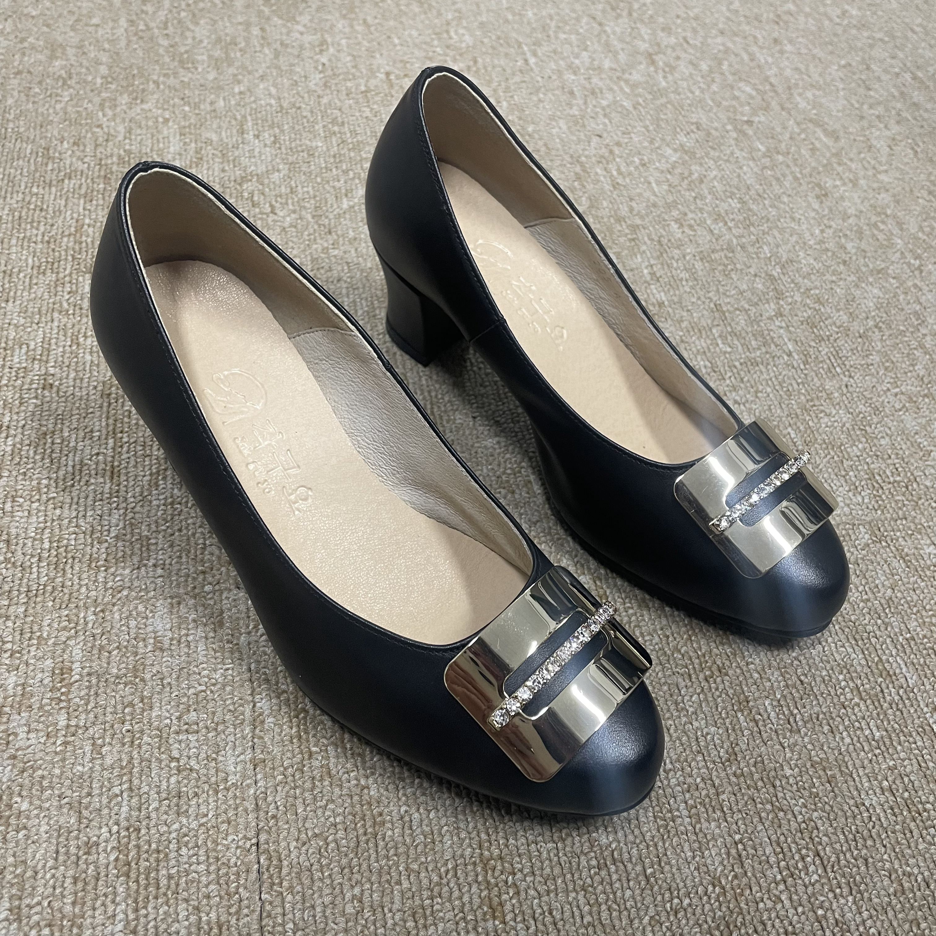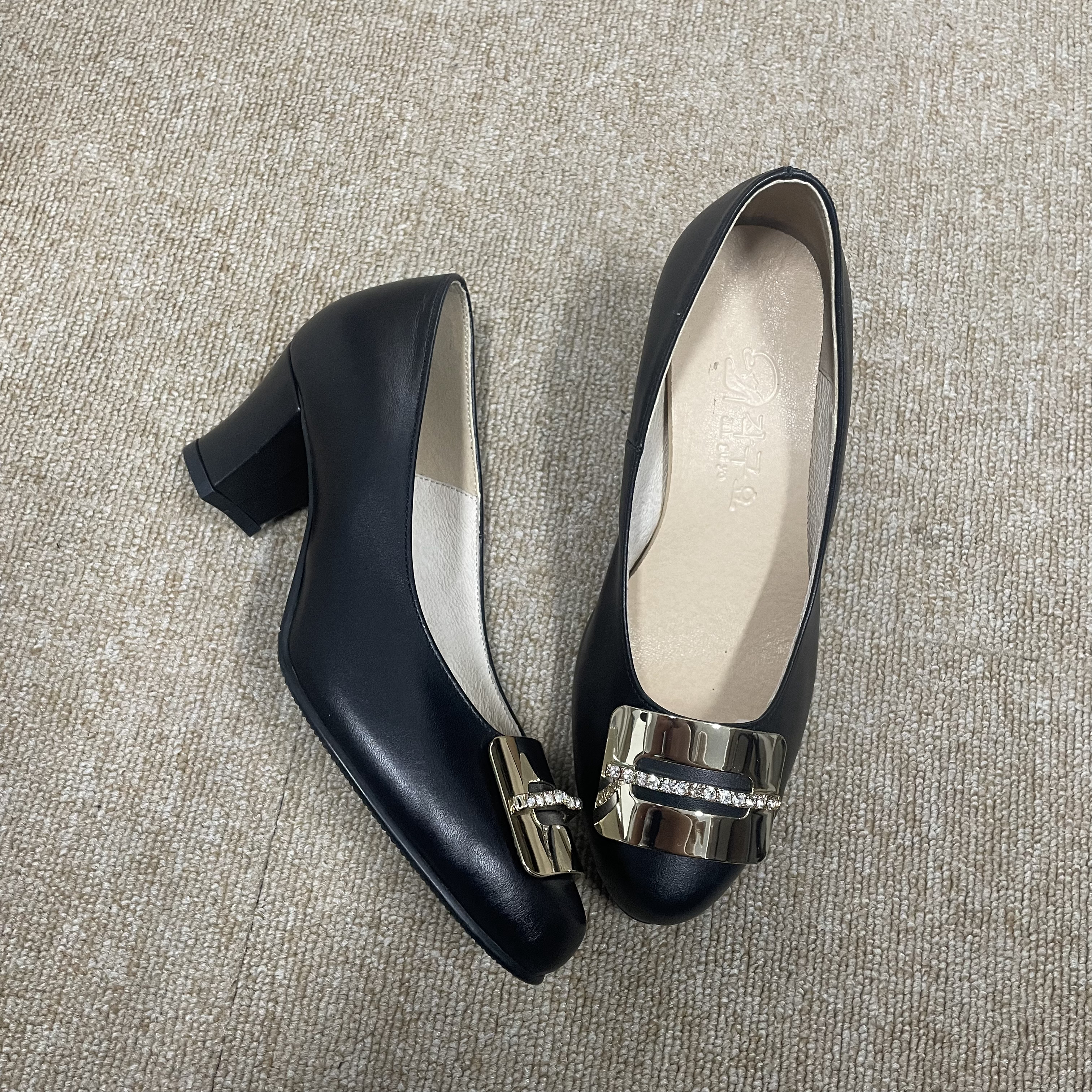 작구요 소가죽 검정 미들 라인 큐빅 펌프스 힐 5cm