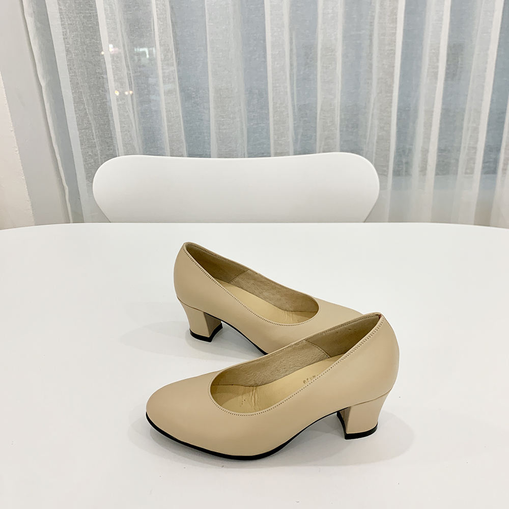 작구요 소가죽 연베이지 펌프스 힐 5cm